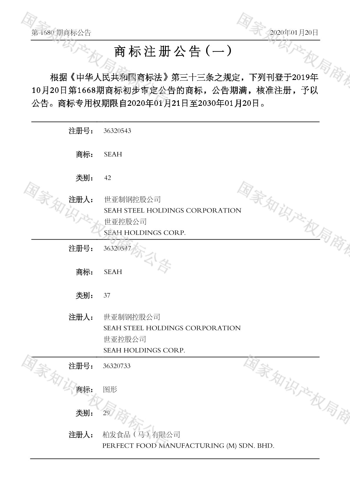 商标注册公告(一) 2020-01-20 第1680期 查看公告