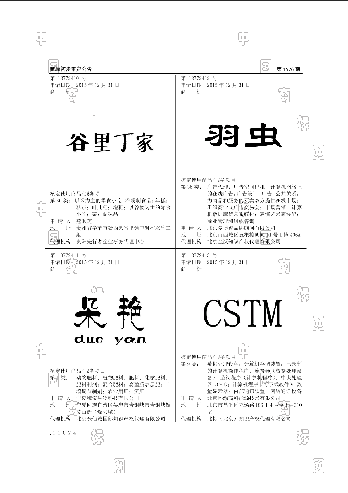2015-12-31 商标注册申请 | 申请收文