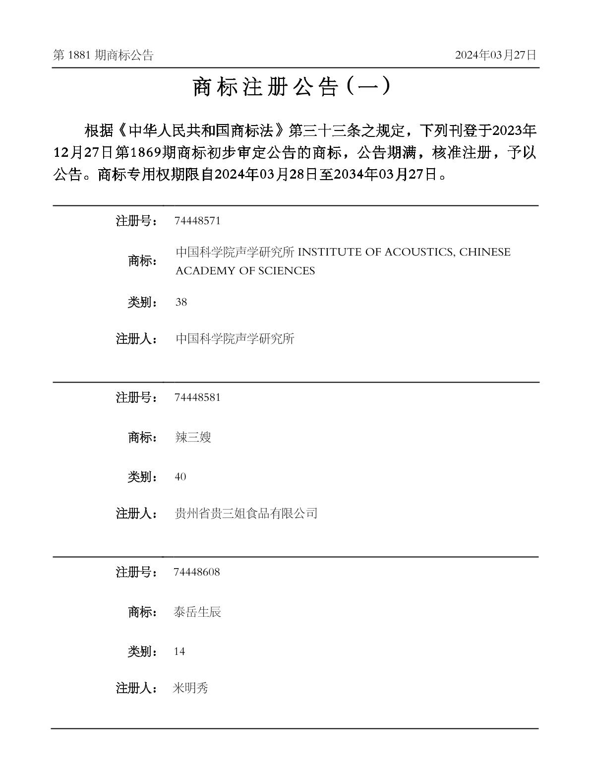 【 中国科学院声学研究所 INSTITUTE OF ACOUSTICS, CHINESE ACADEMY OF SCIENCES】商标详情