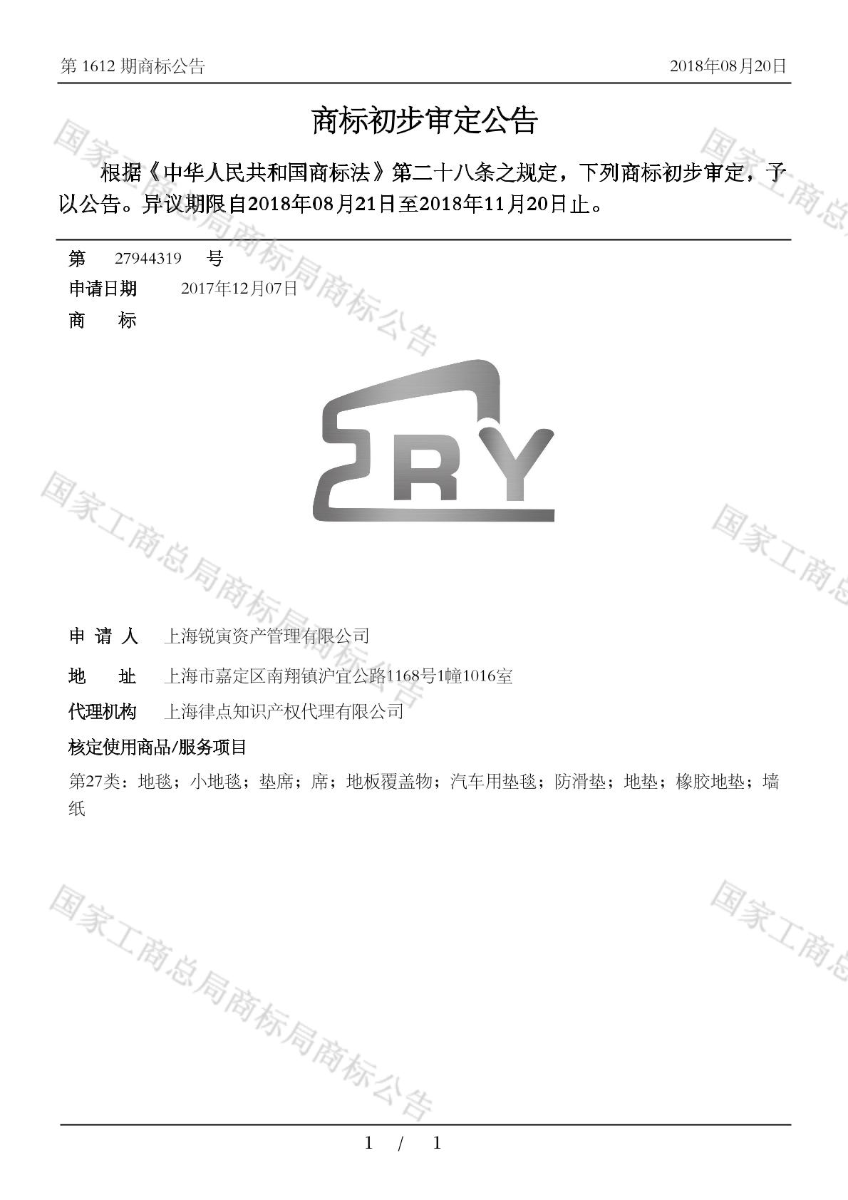 2701-地毯;2701-小地毯;2702-垫席;2702-席;2703-地垫;2703-地板覆盖物;2703-橡胶地垫;2703-汽车用垫毯;2703-防滑垫;2704-墙纸 - 1612