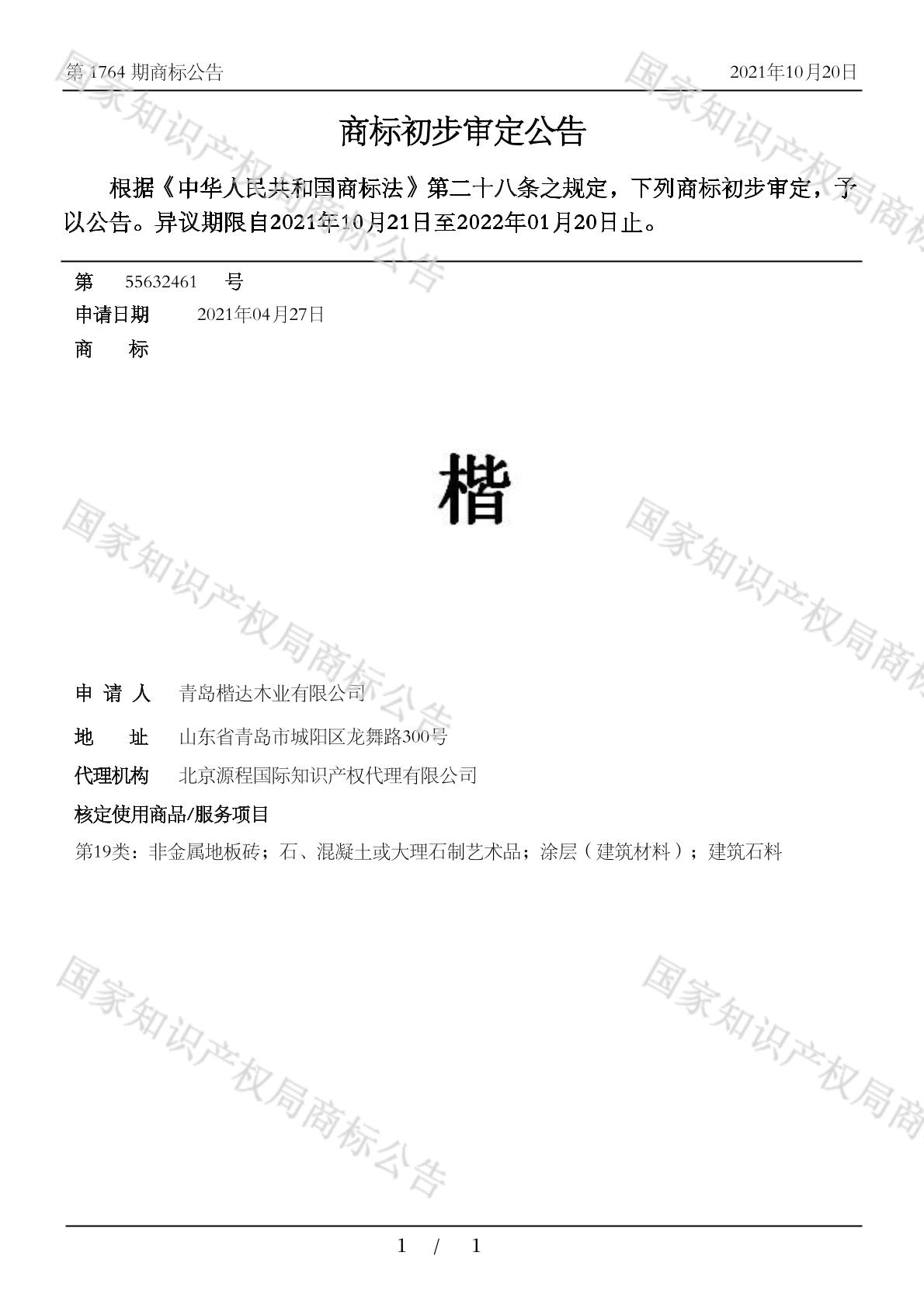 1901-木地板;1901-胶合板;1902-建筑石料;1906-非金属地板砖;1907-非金属耐火建筑材料;1908-防水卷材;1909-非金属建筑材料;1910-非金属建筑物;1912-涂层(建筑材料);1914-石、混凝土或大理石制艺术品 - 1764