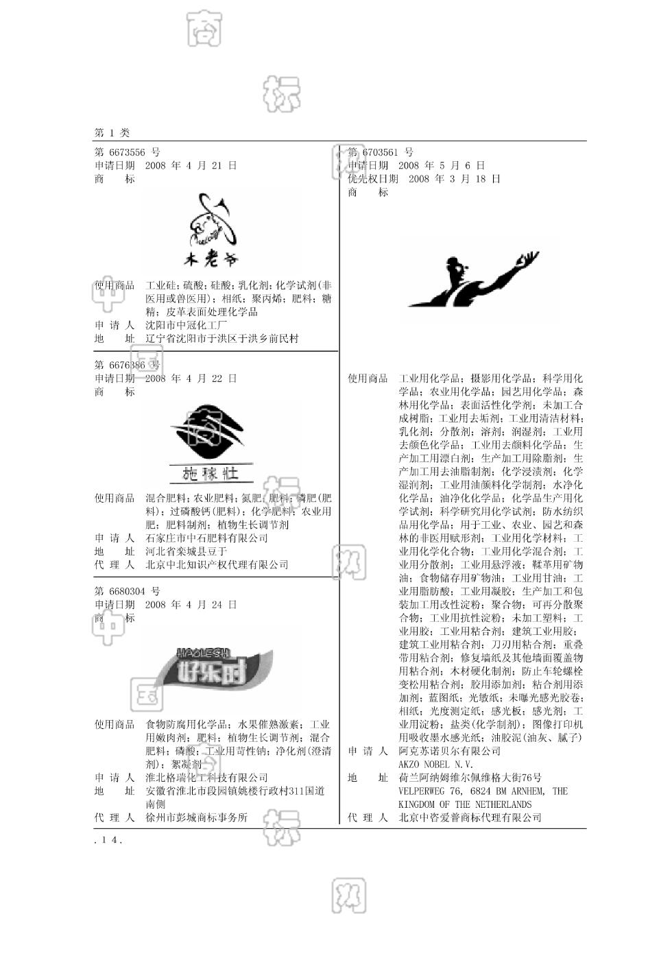 0101-工业硅;0102-硅酸;0102-硫酸;0104-乳化剂;0106-化学试剂(非医用或兽医用);0107-相纸;0108-聚丙烯;0109-肥料;0113-糖精;0114-皮革表面处理化学品 - 1213