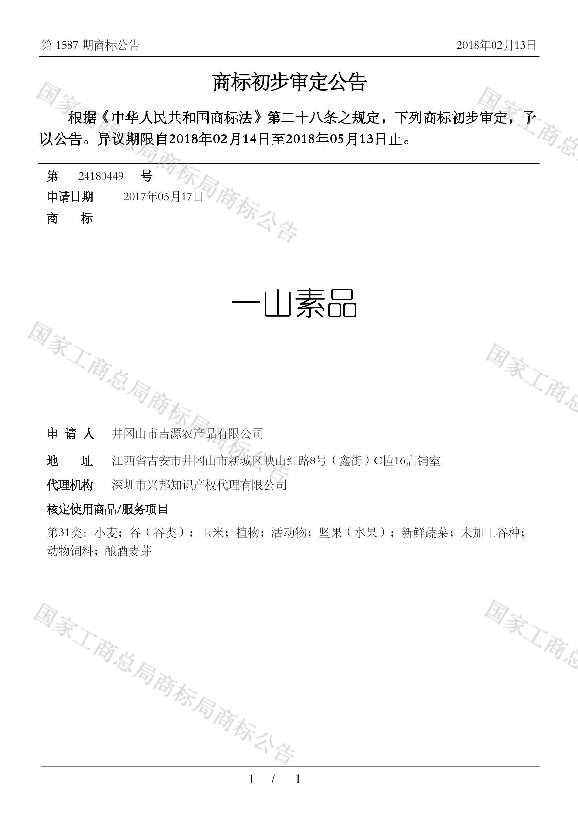 【一山素品】商标详情