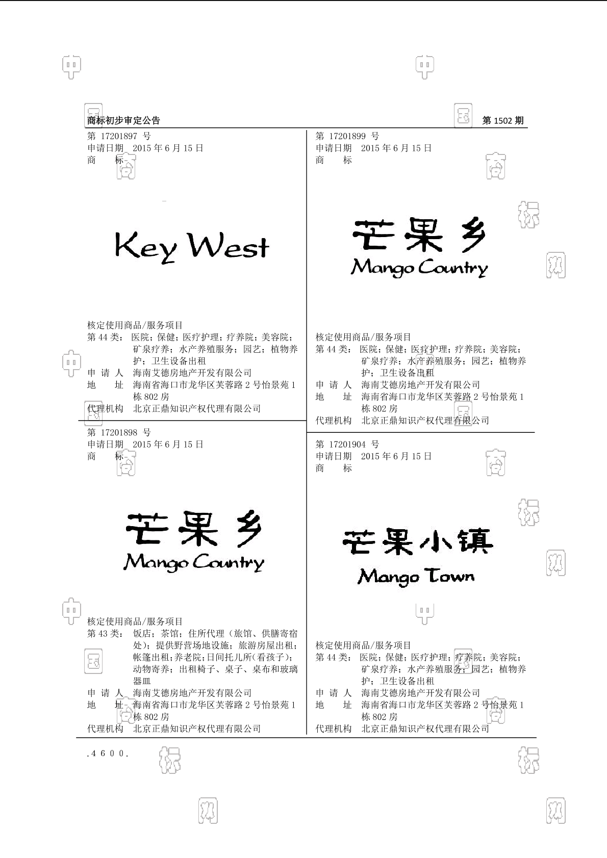 4401-保健;4401-医疗护理;4401-医院;4401-疗养院;4402-矿泉疗养;4402-美容院;4403-水产养殖服务;4404-园艺;4404-植物养护;4405-卫生设备出租 - 1502