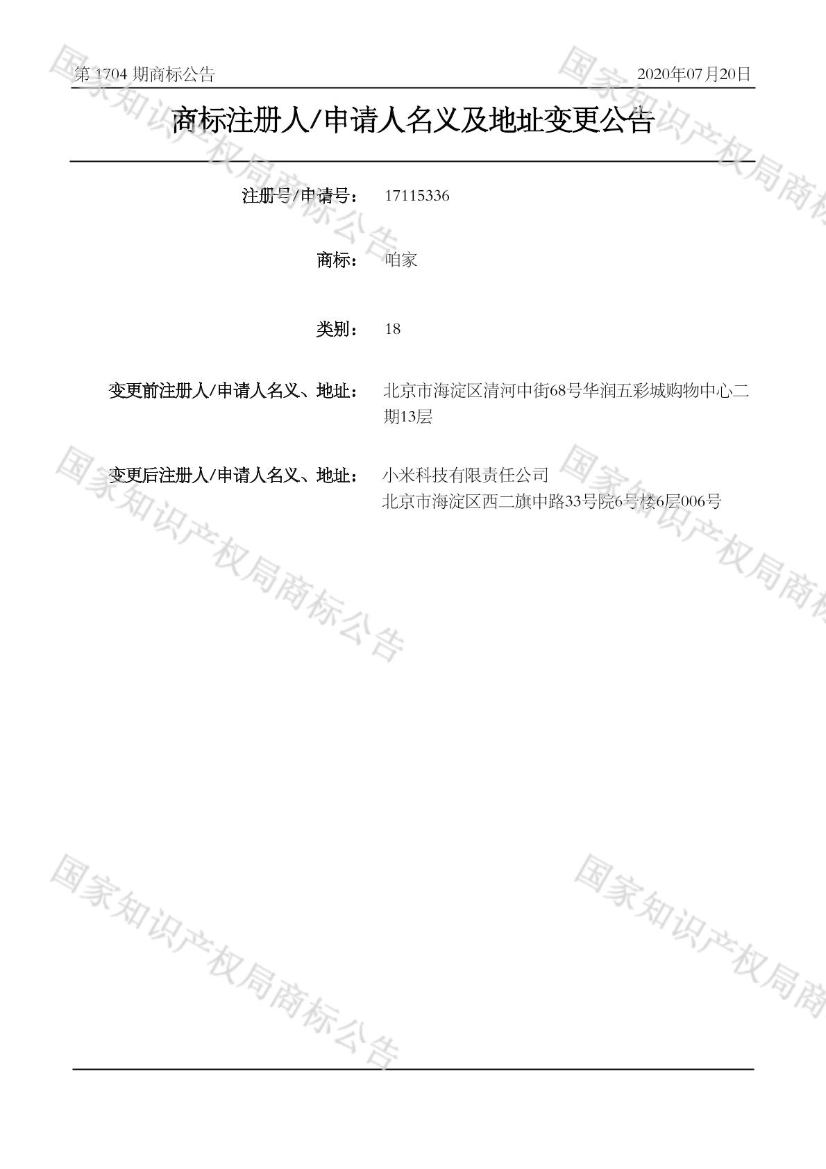 2020-07-01 变更商标申请人/注册人名义/地址 | 申请收文