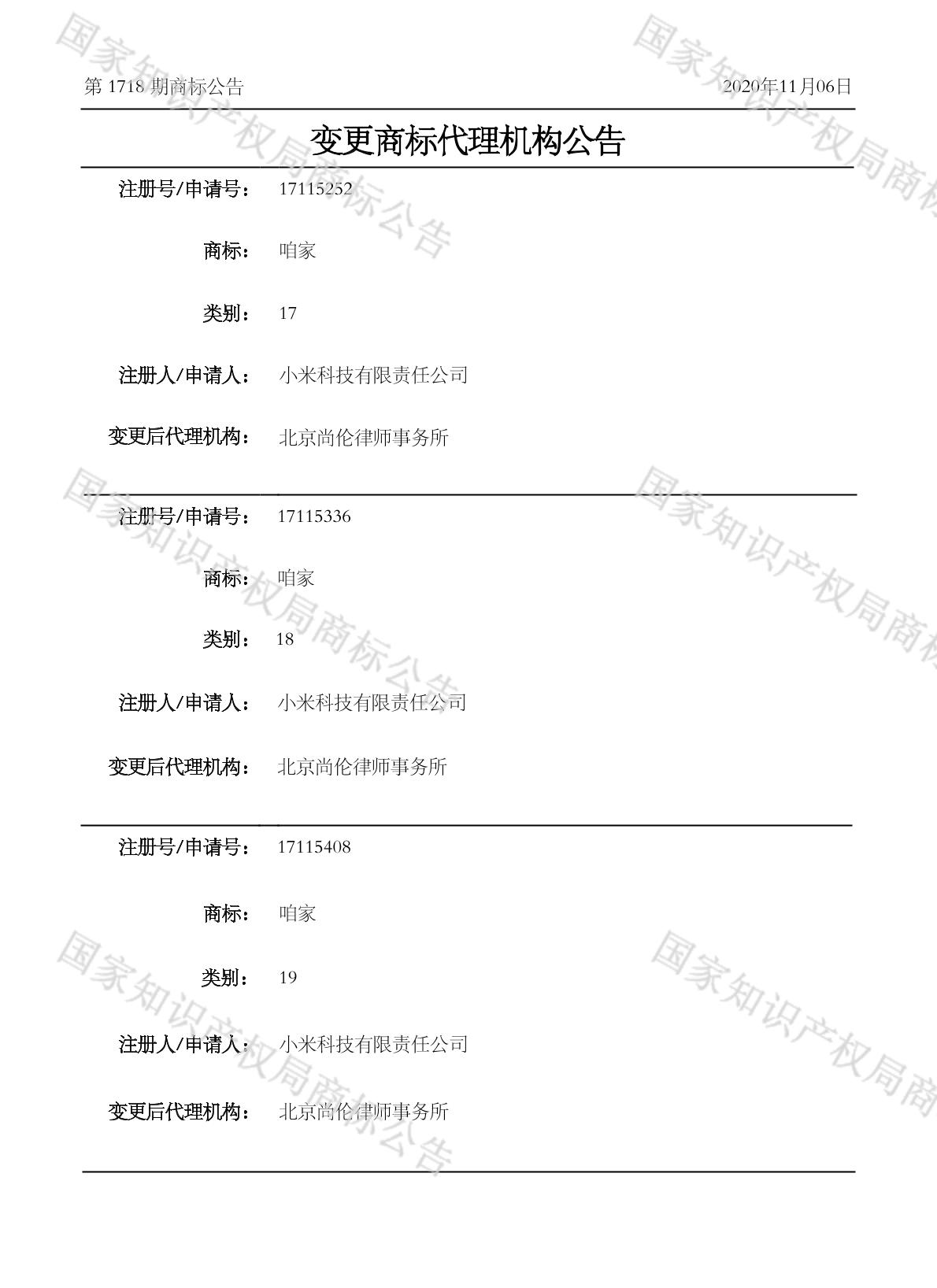 2020-10-20 变更商标代理人 | 核准通知打印发送