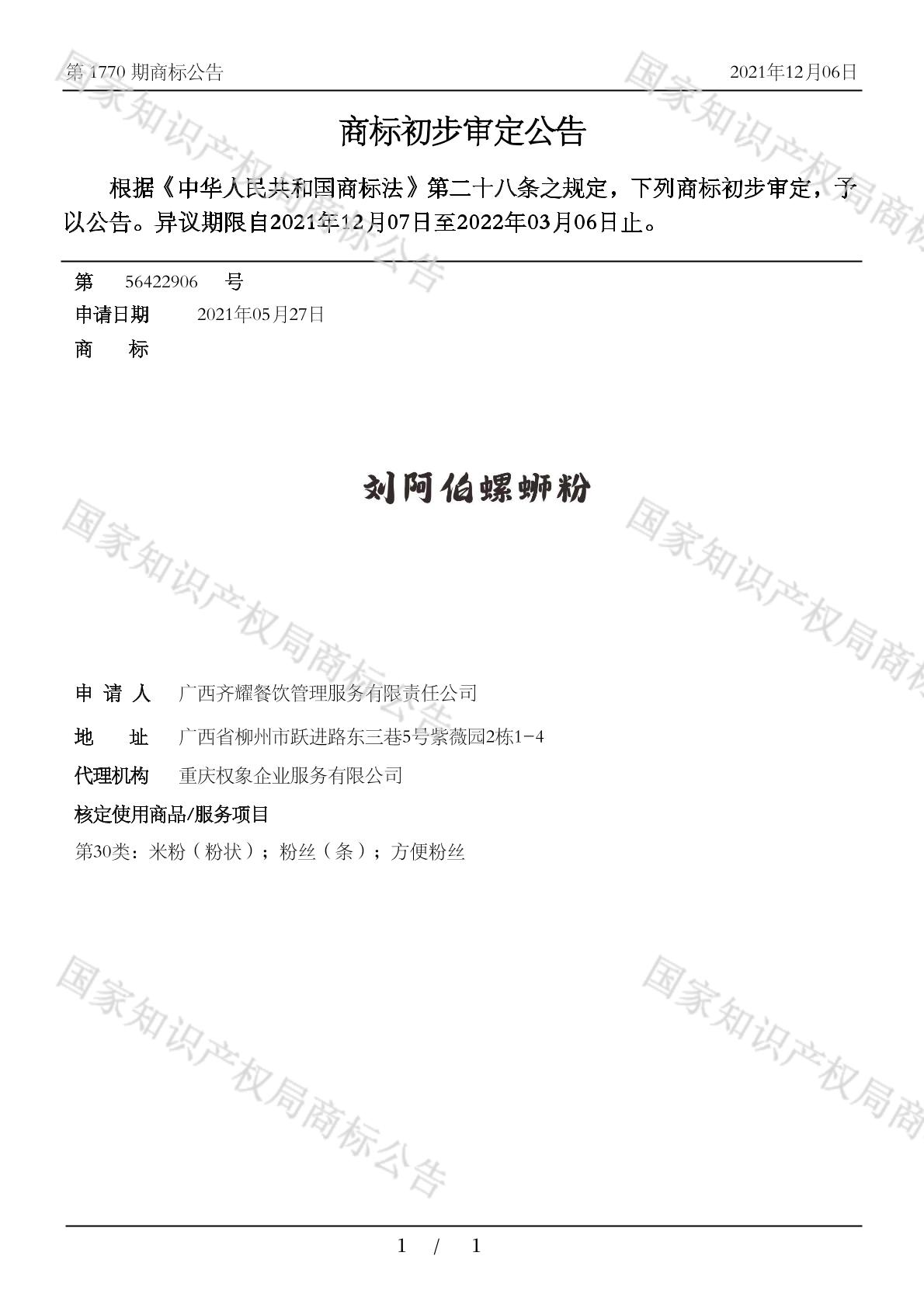 3002-茶饮料;3006-脆米饼;3008-米粉(粉状);3008-谷类制品;3009-方便粉丝;3009-面条;3010-脆米饼;3012-粉丝(条);3015-醋;3016-调味品;3018-食品用香料(含醚香料和香精油除外) - 1770