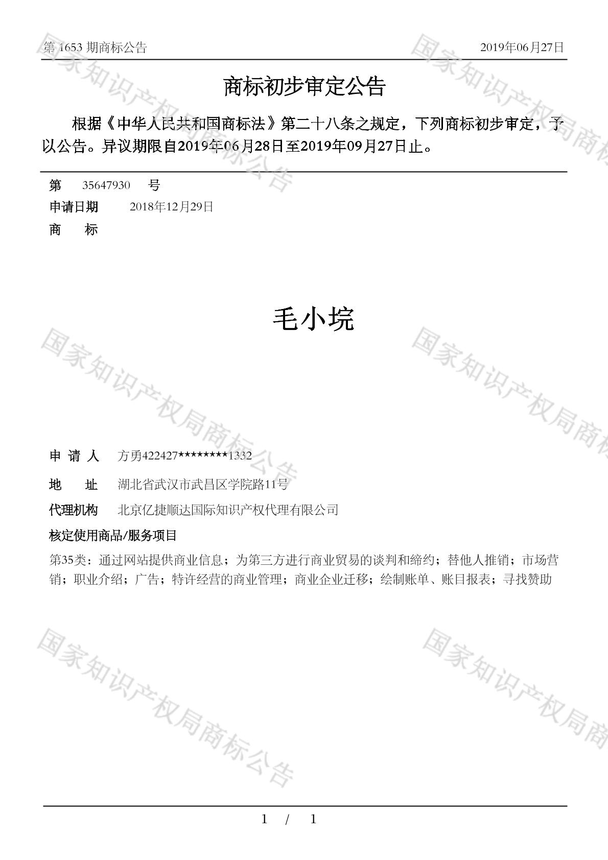 【毛小垸】商标详情