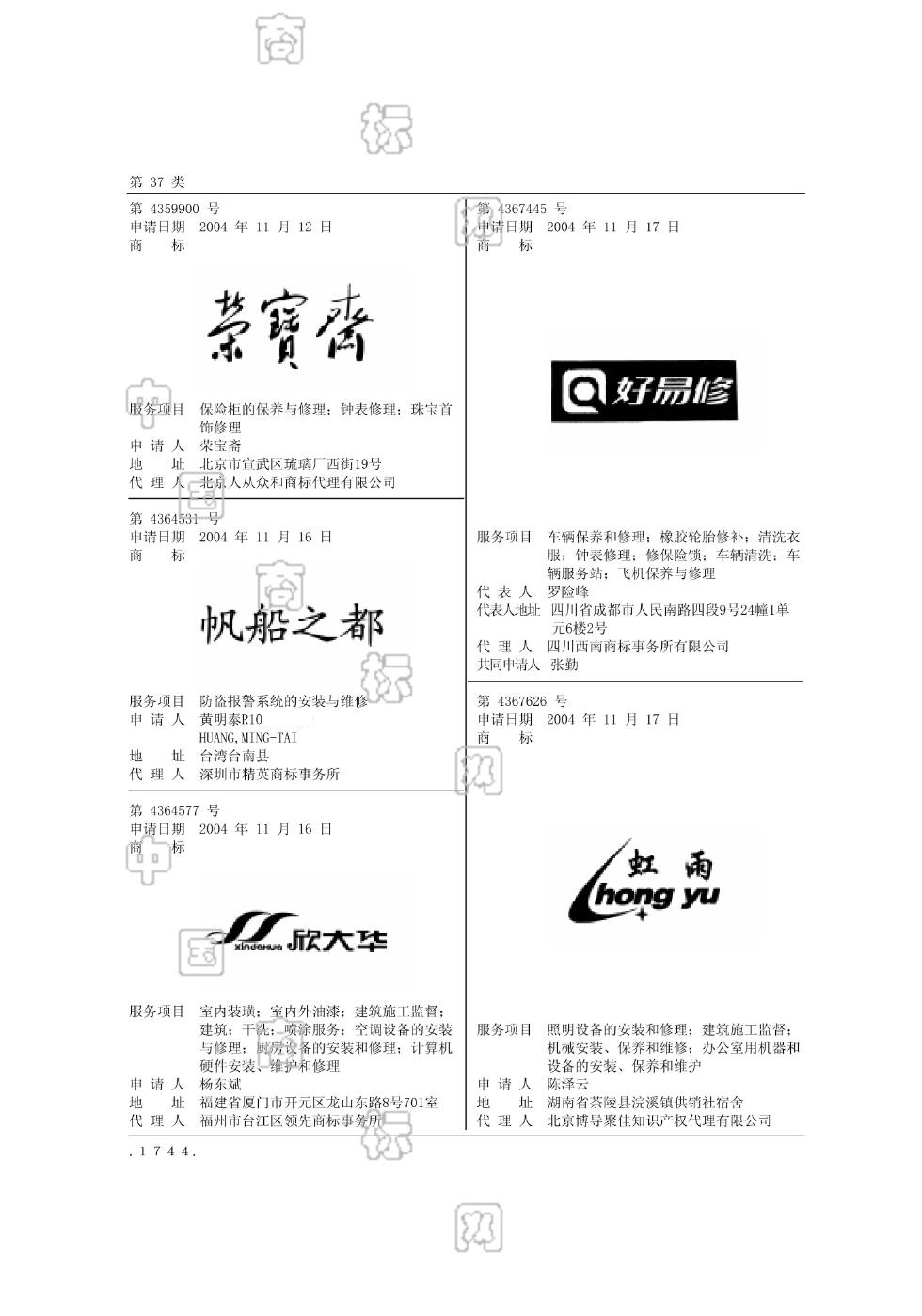 3701-建筑信息;3702-建筑;3704-室内装潢;3705-供暖设备的安装和修理;3706-机械安装、保养和修理;3711-钟表修理;3712-保险柜的保养与修理;3713-喷涂服务;3715-家具修复;3718-珠宝首饰修理 - 1124