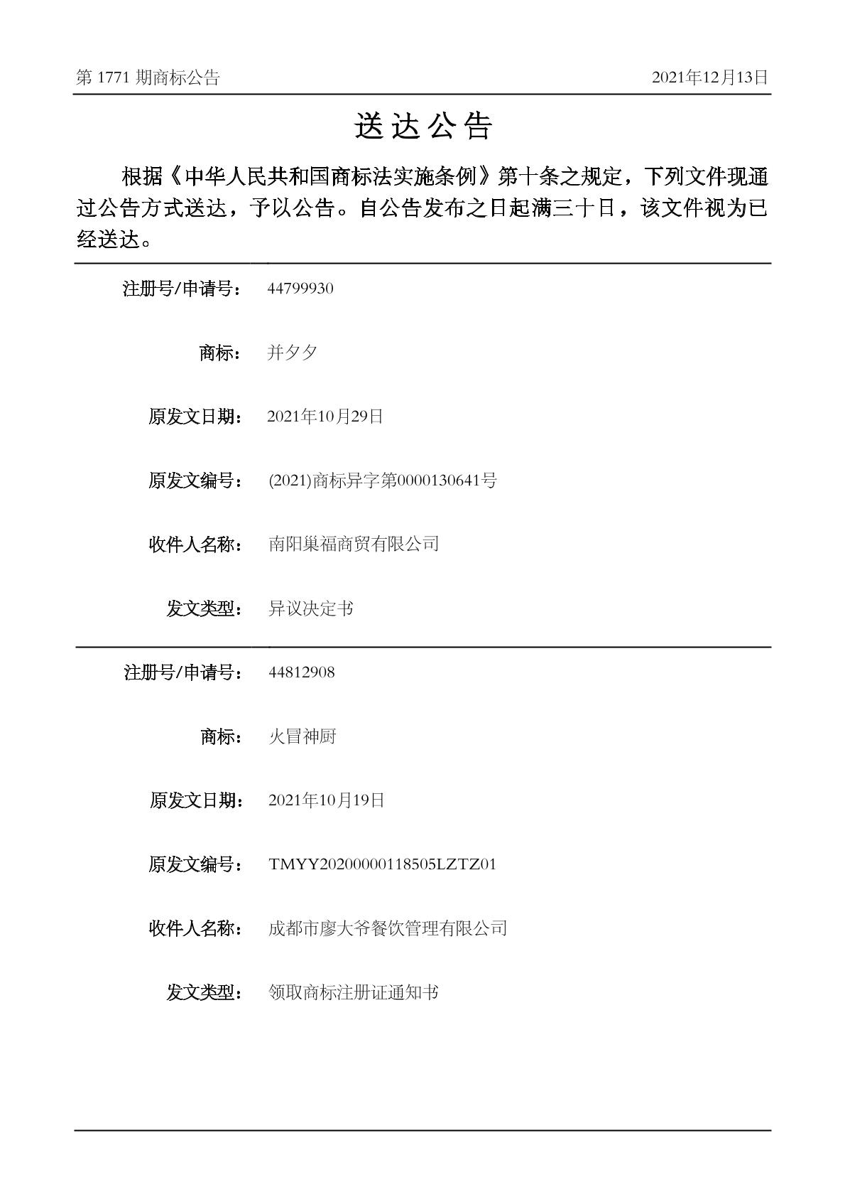 2021-12-13 商标异议申请 | 排版送达公告(异议决定书)