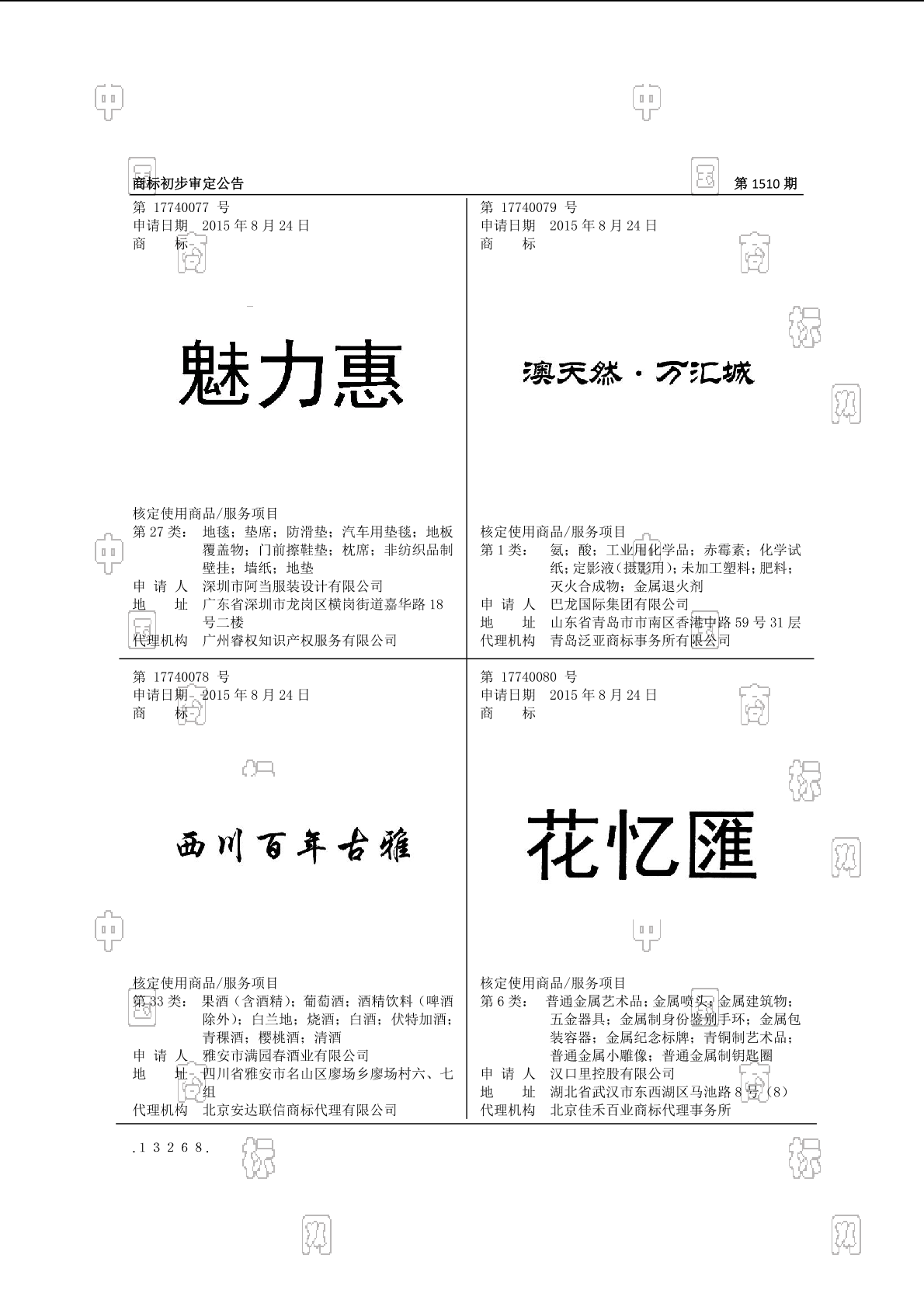 2701-地毯;2702-垫席;2702-枕席;2703-地垫;2703-地板覆盖物;2703-汽车用垫毯;2703-门前擦鞋垫;2703-防滑垫;2704-墙纸;2704-非纺织品制壁挂 - 1510