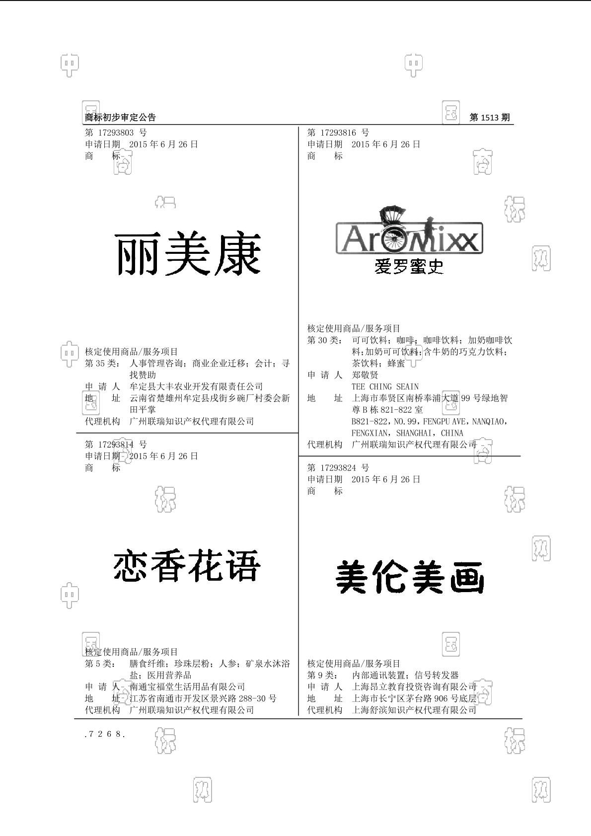 0501-人参;0501-珍珠层粉;0501-矿泉水沐浴盐;0501-膳食纤维;0502-医用营养品;0506-卫生垫;0506-卫生巾;0506-卫生棉条;0506-婴儿尿裤;0506-消毒纸巾 - 1513