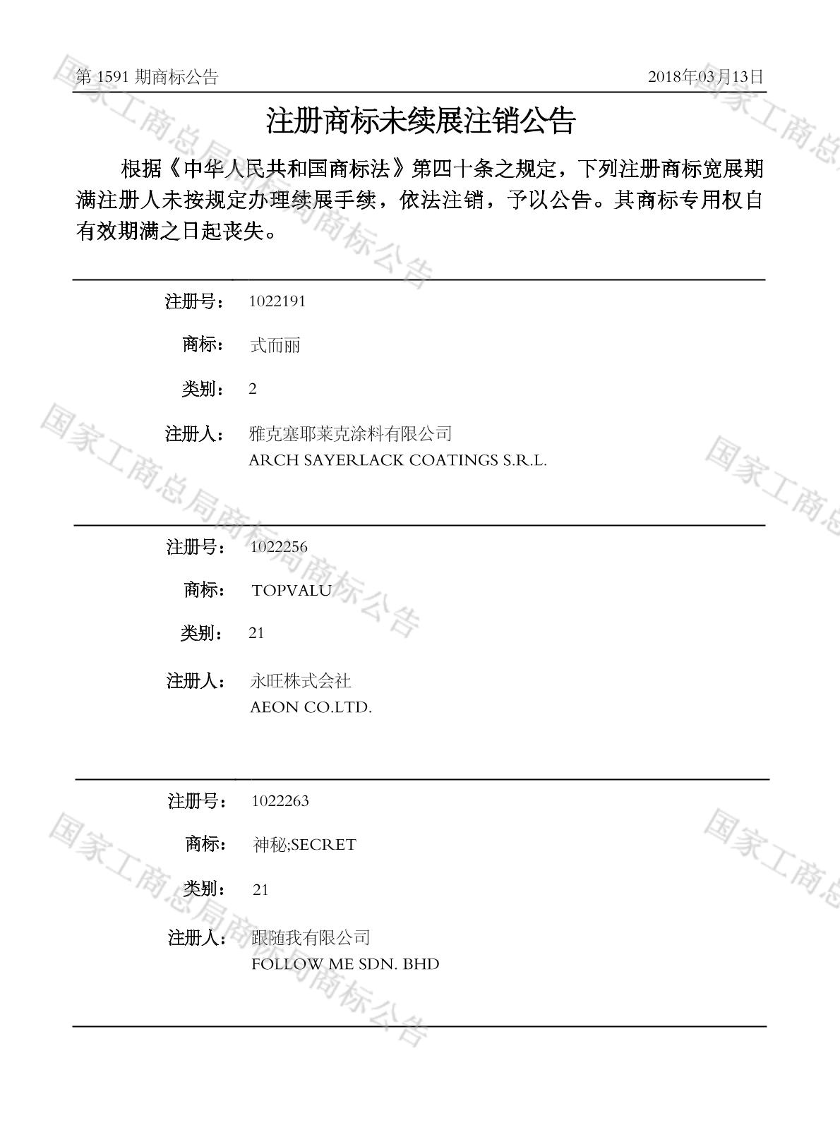 2018-03-13 期满未续展注销商标 | 排版未续展注销公告