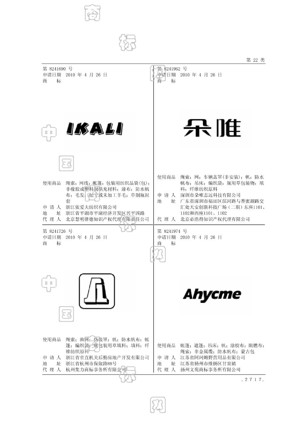 2201-绳索;2202-伪装罩;2202-帆;2202-帐篷;2202-渔网;2202-防水帆布;2203-瓶包装用草填料;2203-编织袋;2204-填料;2205-纤维纺织原料 - 1249