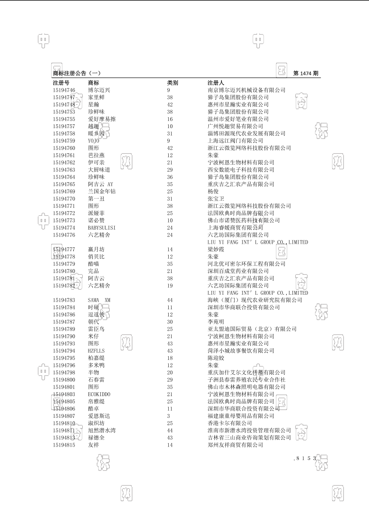 2015-10-08 商标注册申请 | 商标注册申请注册公告排版完成