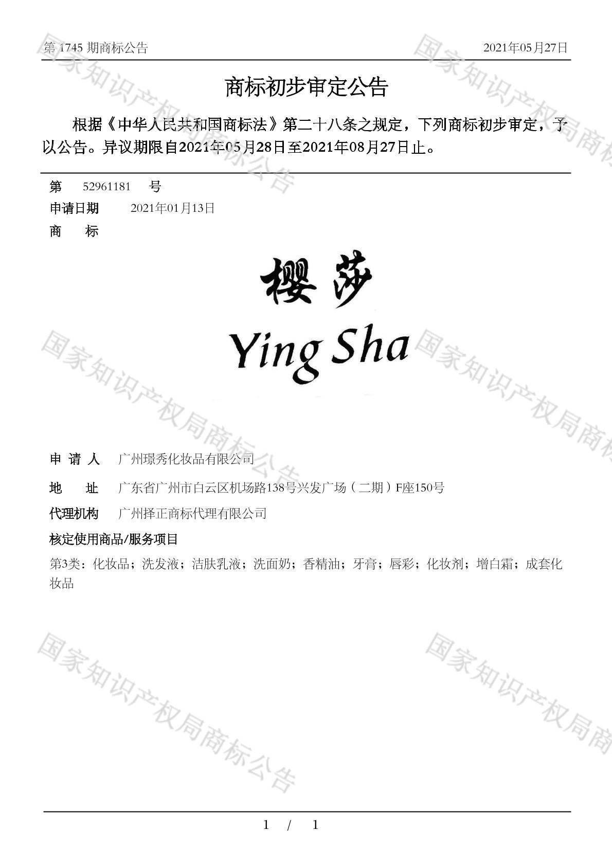 【樱莎】商标详情