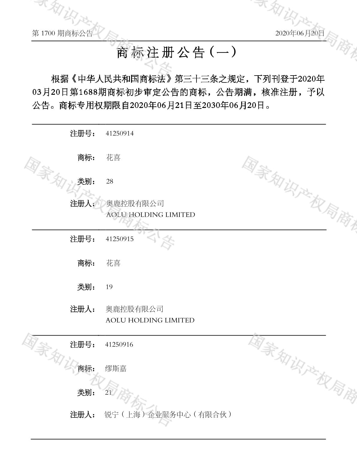 1901-木地板;1902-石料;1904-水泥;1906-瓷砖;1907-非金属耐火建筑材料;1909-建筑用塑料管;1909-非金属门;1910-非金属建筑物;1911-建筑用玻璃;1914-石、混凝土或大理石小雕像 - 1688