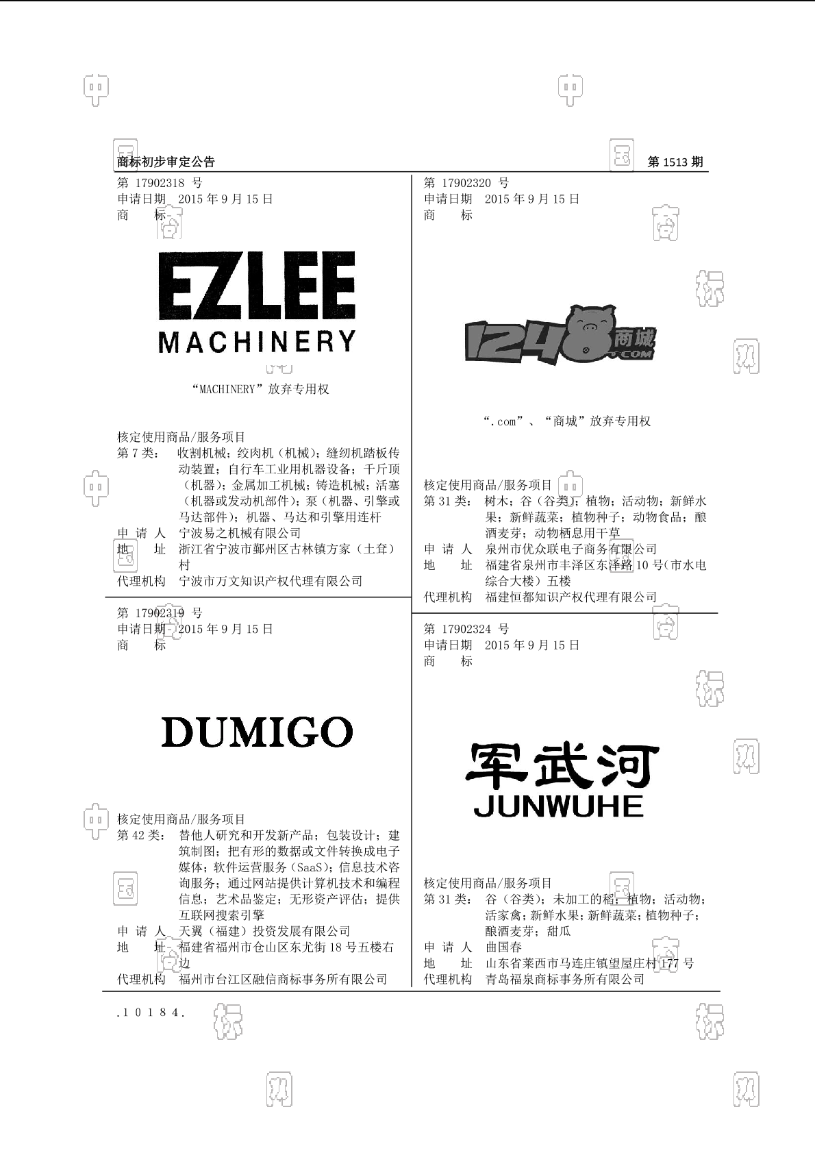 4209-替他人研究和开发新产品;4216-包装设计;4217-建筑制图;4220-信息技术咨询服务;4220-把有形的数据或文件转换成电子媒体;4220-提供互联网搜索引擎;4220-软件运营服务(SaaS);4220-通过网站提供计算机技术和编程信息;4224-艺术品鉴定;4227-无形资产评估 - 1513