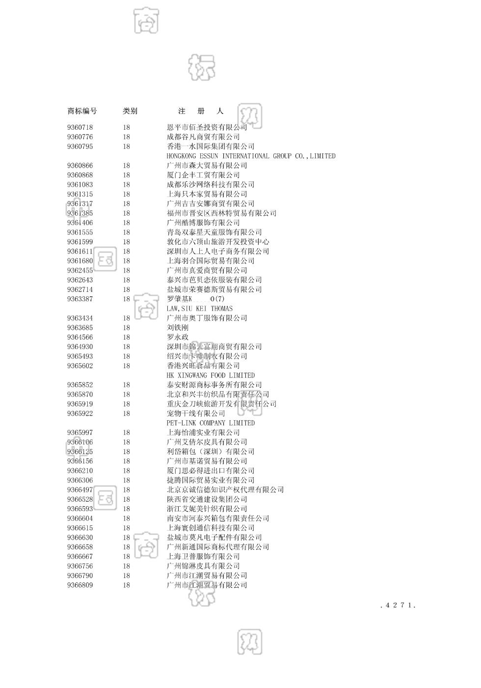 1801-仿皮;1802-书包;1802-公文包;1802-公文箱;1802-卡片盒(皮夹子);1802-卡片盒(皮夹子).;1802-大衣箱(行李);1802-家具用皮装饰;1802-小皮夹;1802-帆布箱;1802-帆布背包;1802-手提包;1802-护照夹(皮革制);1802-旅行包(箱);1802-皮垫;1802-皮肩带;1802-背包;1802-衣箱;1802-购物袋;1802-运动包;1802-钱包;1803-裘皮;1804-伞;1805-手杖;1806-马具;1807-香肠肠衣 - 1298