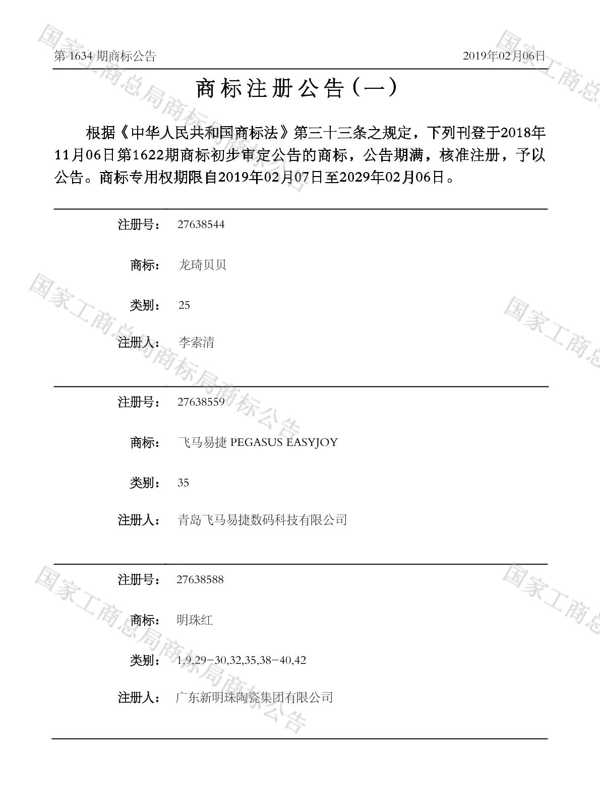 2019-05-20 商标注册申请 | 注册证发文