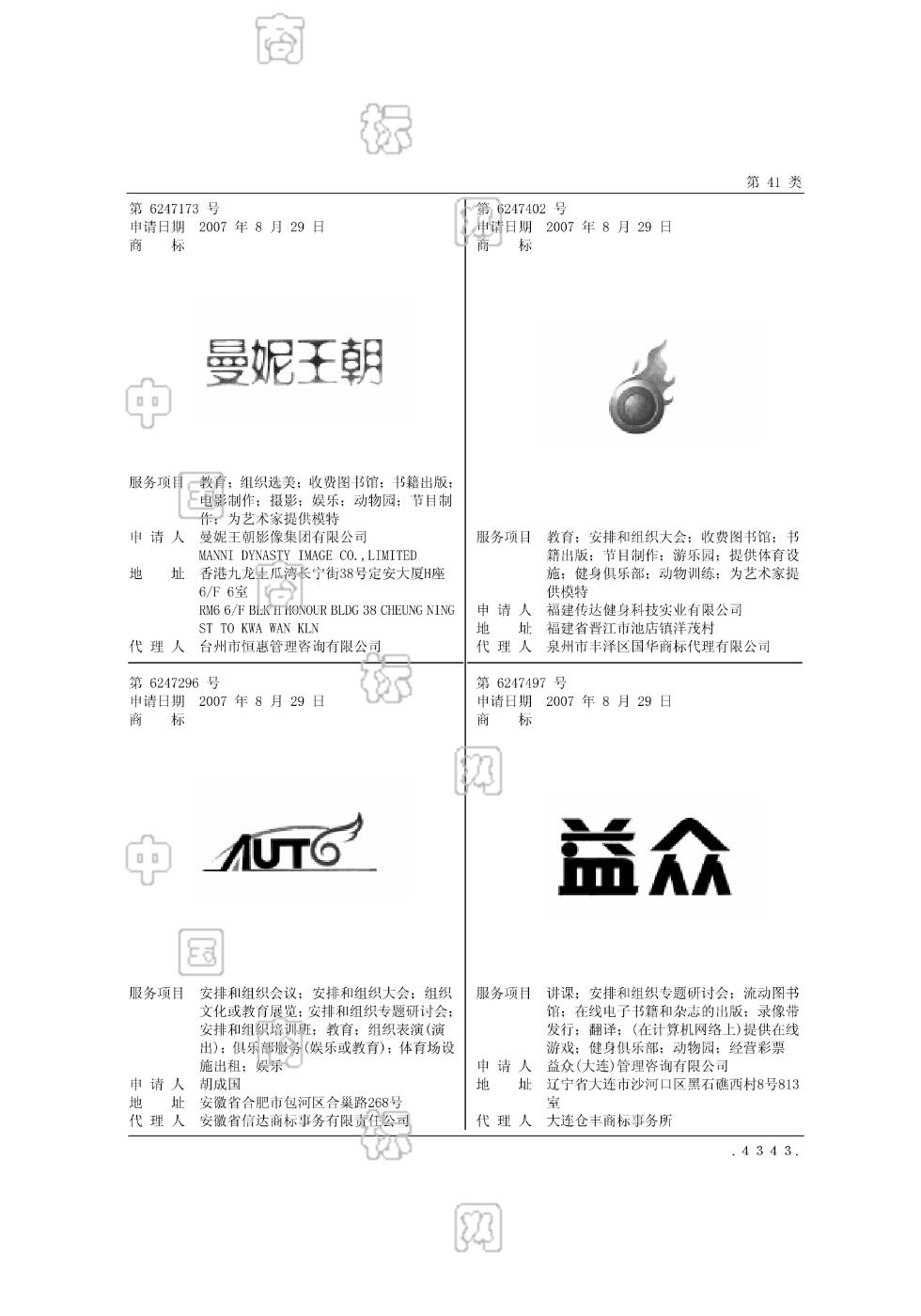 2007-08-29 商标注册申请 | 申请收文
