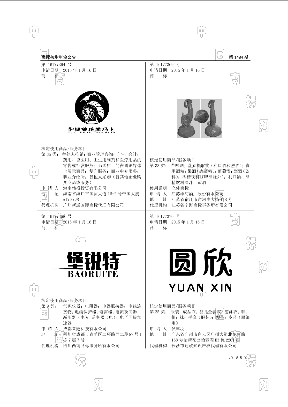 0301-洗发液;0301-浴液;0302-清洁制剂;0303-擦亮用剂;0304-研磨膏;0305-香精油;0306-化妆品;0307-非医用漱口剂;0308-干花瓣与香料混合物(香料);0309-动物用化妆品 - 1484