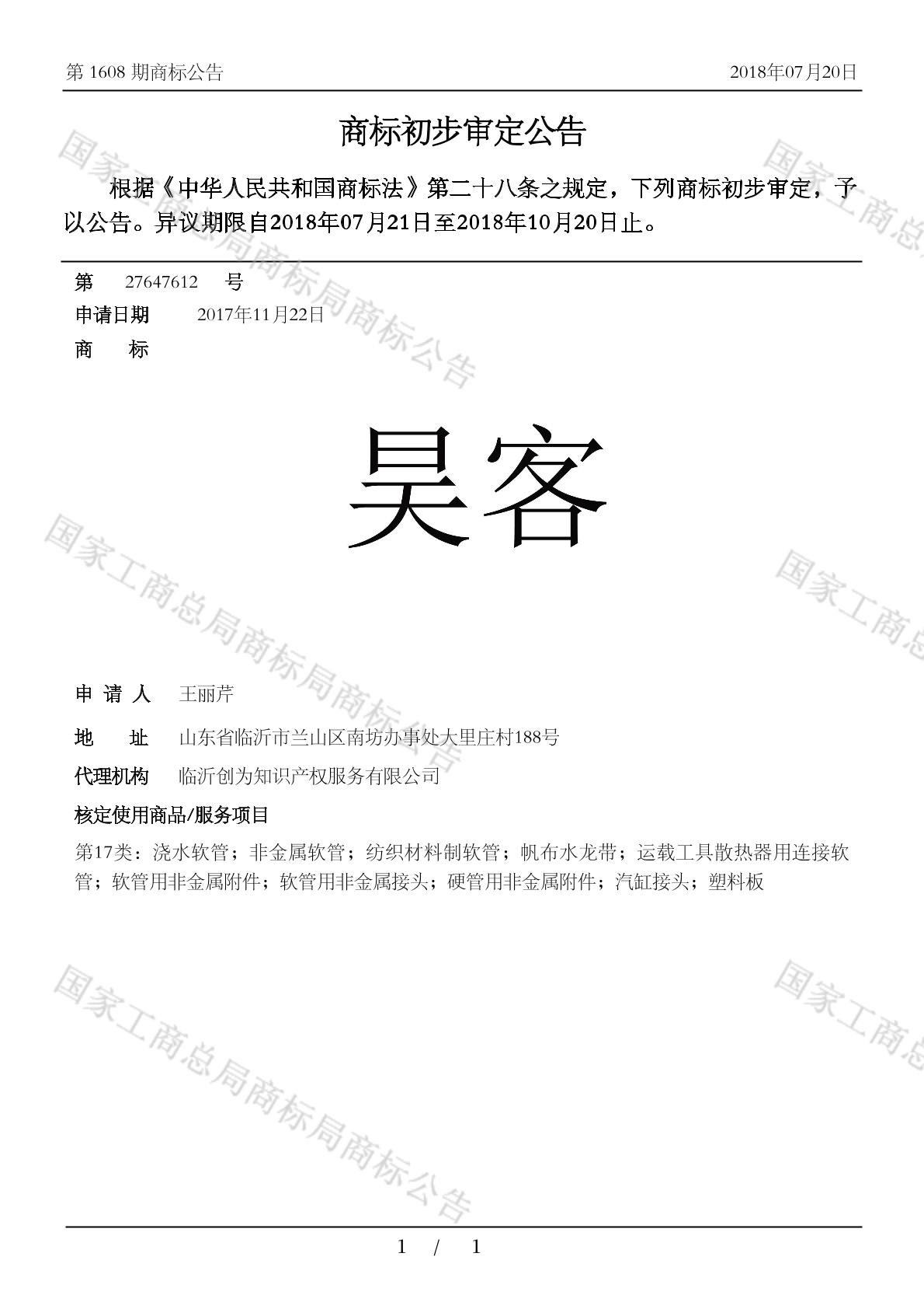 1703-塑料板;1703-汽缸接头;1703-硬管用非金属附件;1703-软管用非金属接头;1703-软管用非金属附件;1704-帆布水龙带;1704-浇水软管;1704-纺织材料制软管;1704-运载工具散热器用连接软管;1704-非金属软管 - 1608