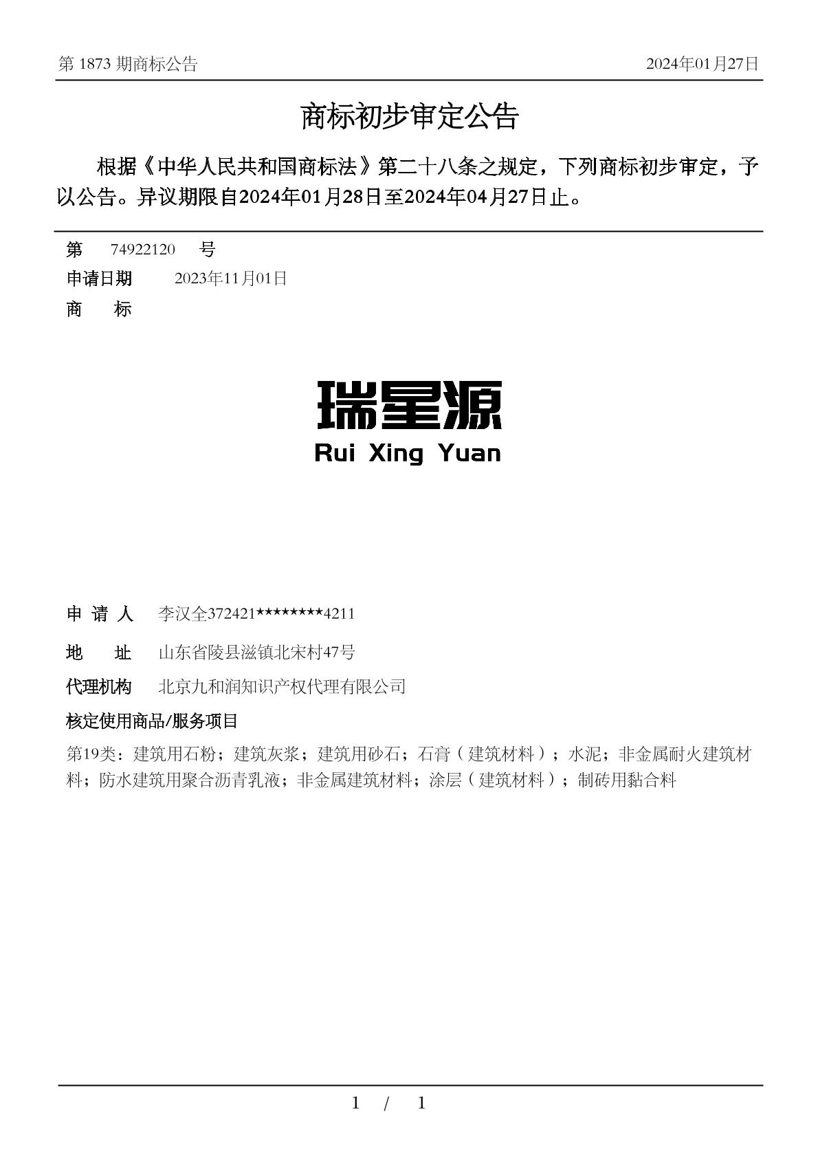 【瑞星源】商标详情