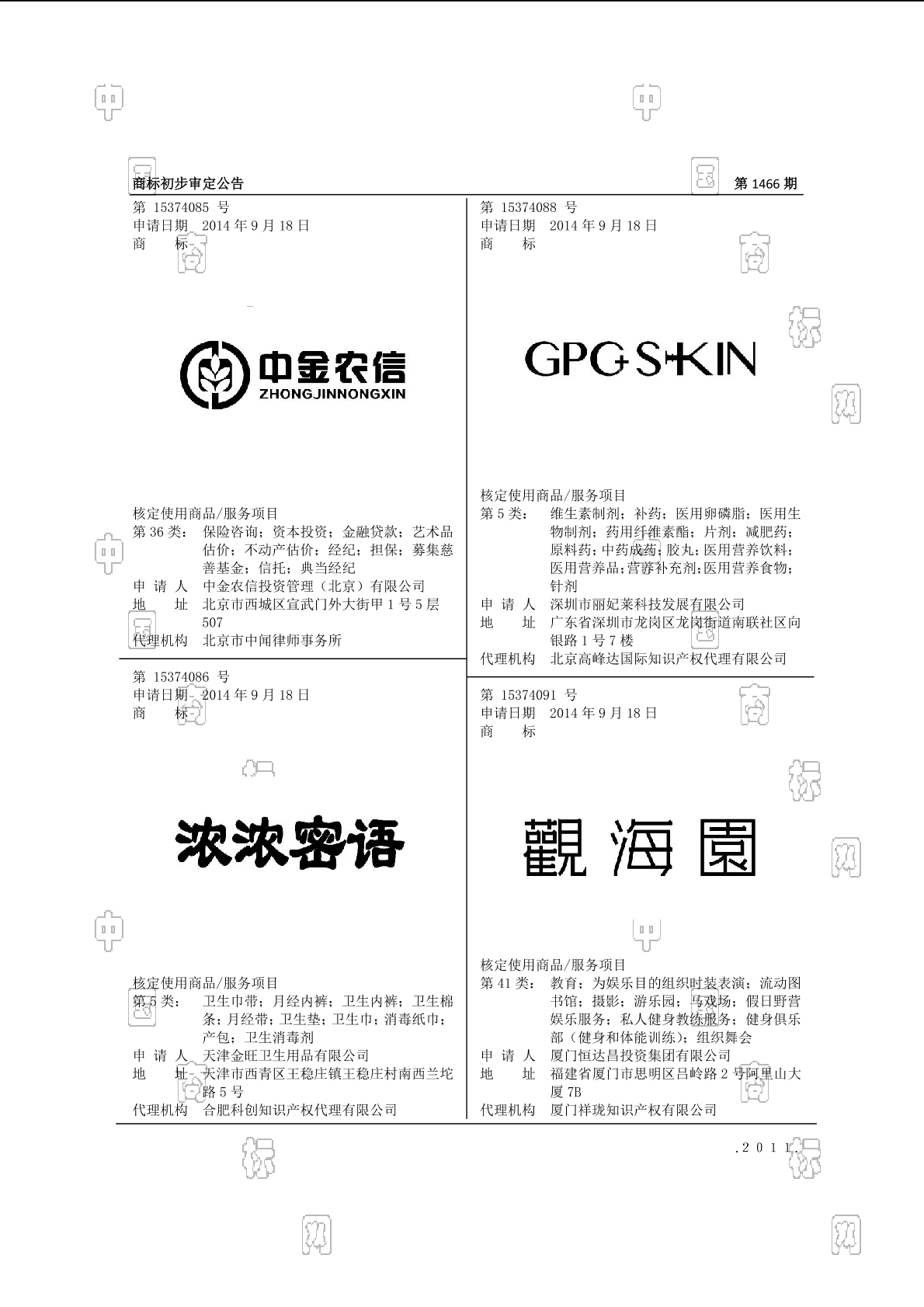 2015-11-07 商标注册申请 | 商标注册申请注册公告排版完成