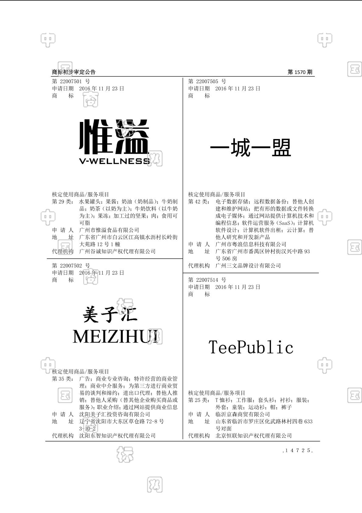 2016-11-23 商标注册申请 | 申请收文