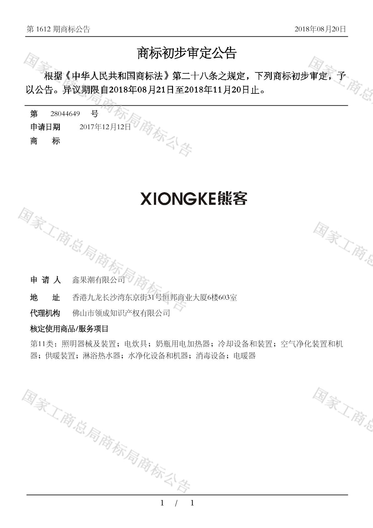 1101-照明器械及装置;1104-奶瓶用电加热器;1104-电炊具;1105-冷却设备和装置;1106-空气净化装置和机器;1108-供暖装置;1109-淋浴热水器;1110-水净化设备和机器;1110-消毒设备;1111-电暖器 - 1612