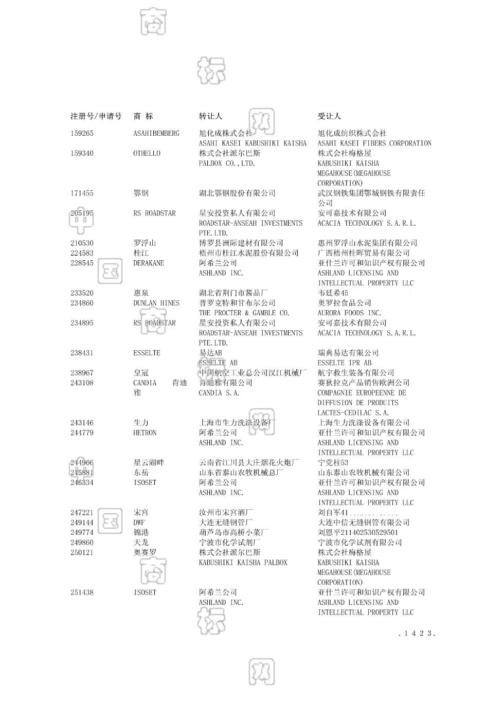 商标转让移转公告 2006-10-14 第1043期 查看公告