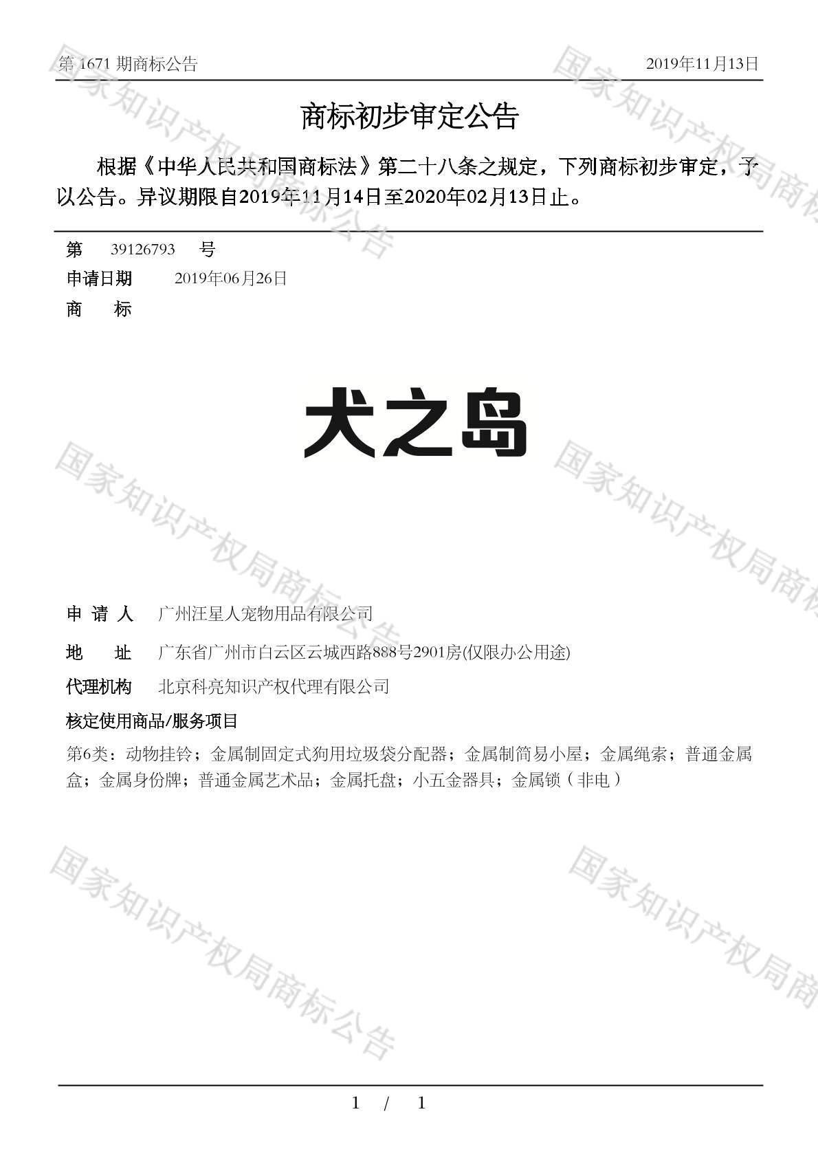 0603-金属制简易小屋;0605-金属绳索;0607-小五金器具;0608-小五金器具;0609-小五金器具;0610-金属锁(非电);0612-金属托盘;0613-普通金属盒;0614-金属身份牌;0615-动物挂铃;0615-金属制固定式狗用垃圾袋分配器;0622-普通金属艺术品 - 1671
