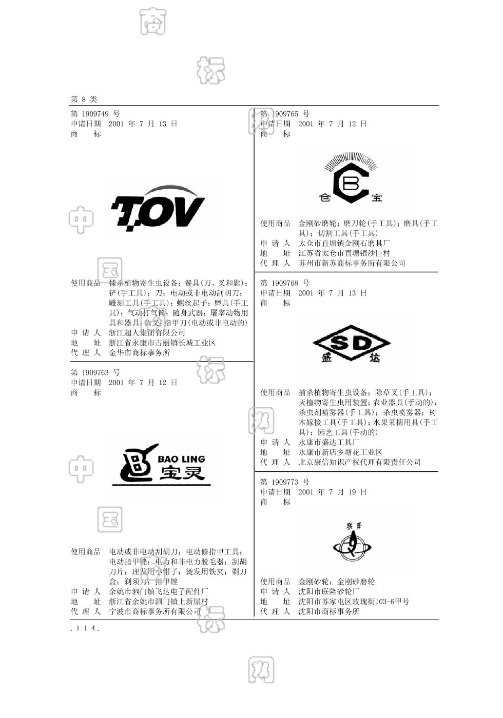 0802-农业器具(手动的);0802-除草叉(手工具);0803-园艺工具(手动的);0803-捕杀植物寄生虫设备;0803-杀虫剂喷雾器(手工具);0803-杀虫喷雾器;0803-树木嫁接工具(手工具);0803-水果采摘用具(手工具);0803-灭植物寄生虫用装置 - 838