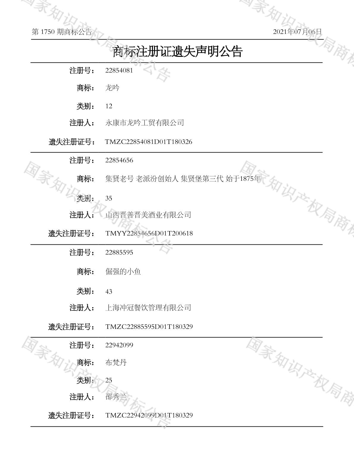 2021-07-02 补发商标注册证 | 等待注册证发文