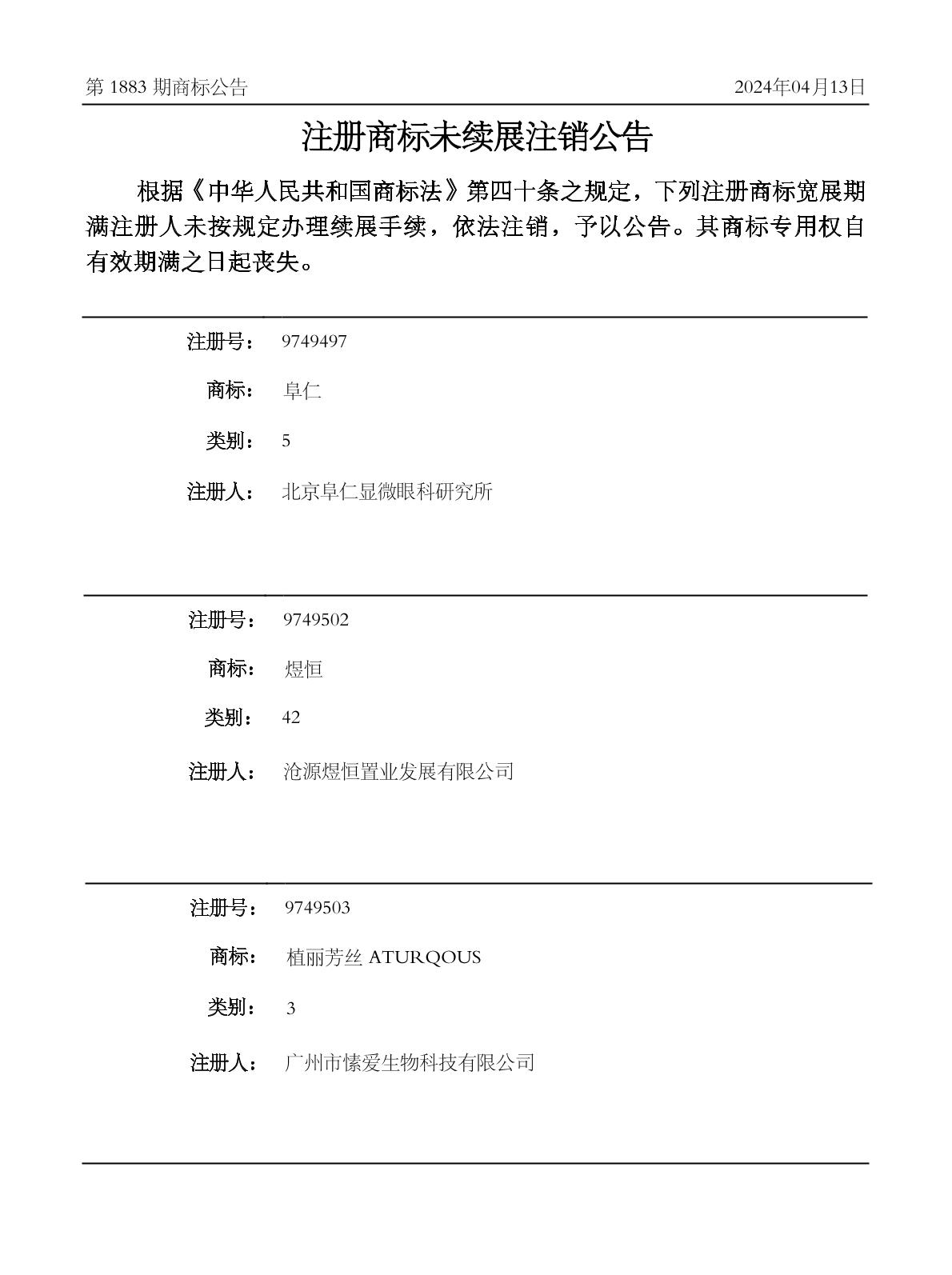 2024-04-15 期满未续展注销商标 | 排版未续展注销公告