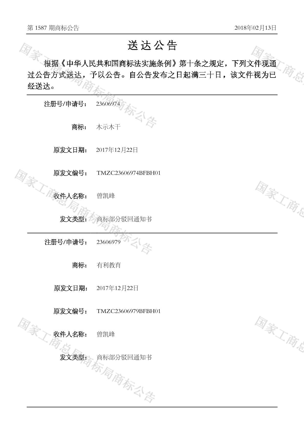 2018-02-13 商标注册申请 | 排版送达公告(商标部分驳回通知书)