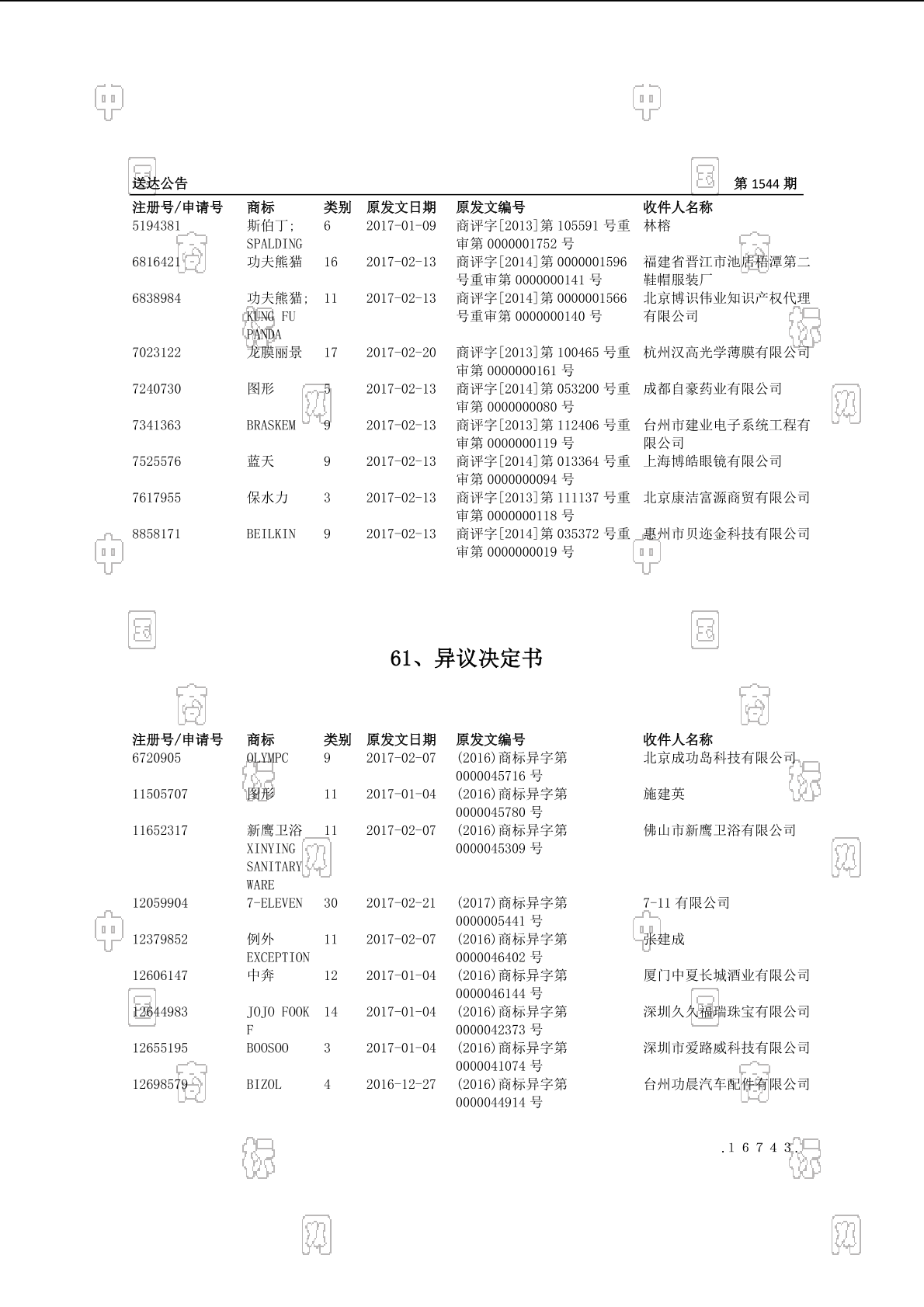 2017-03-21 异议复审 | 排版送达公告