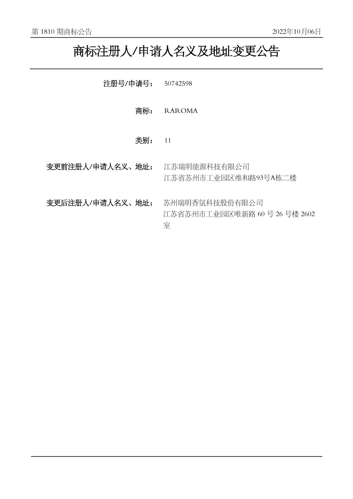 2022-09-26 变更商标申请人/注册人名义/地址 | 申请收文