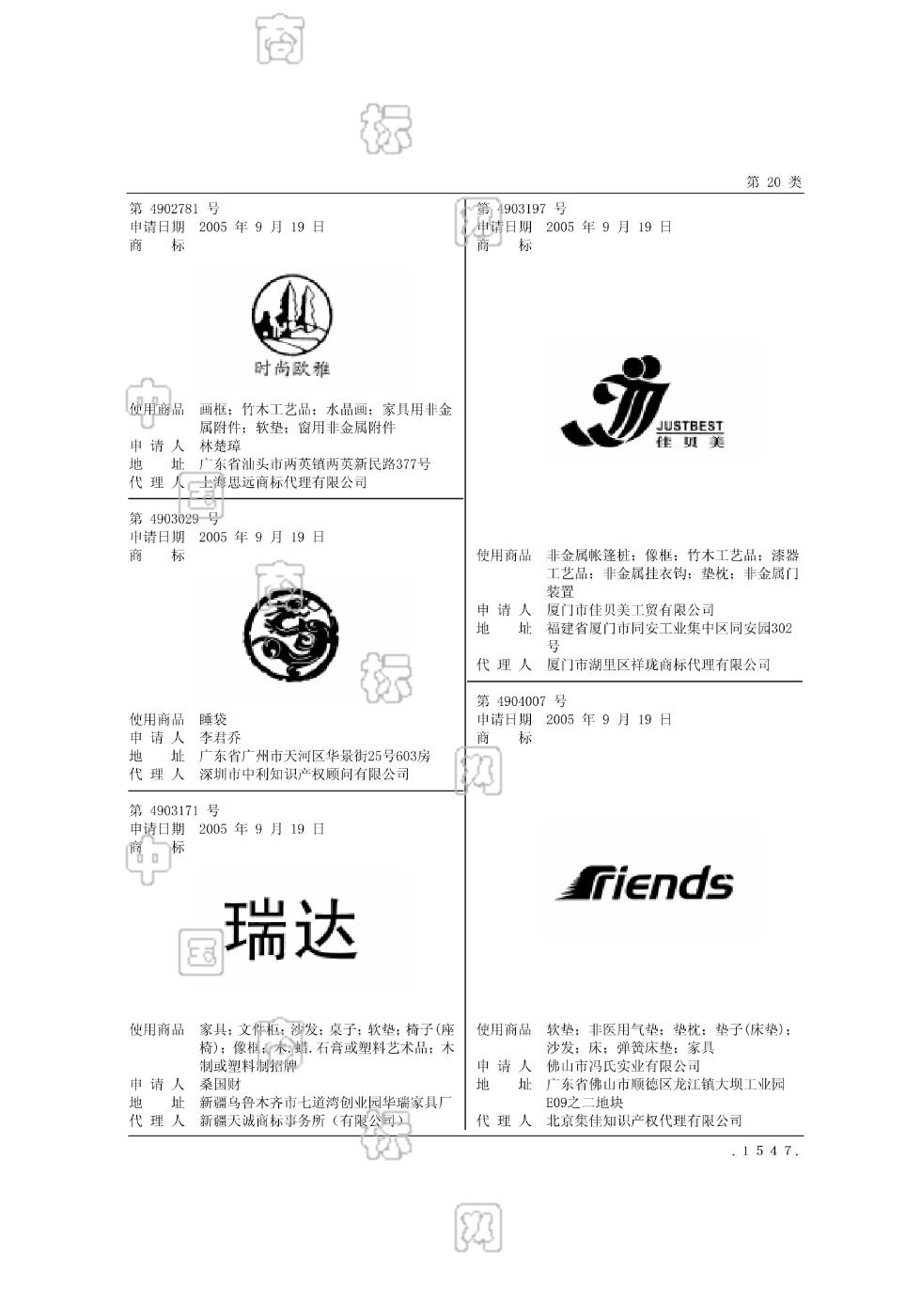 2001-家具;2001-文件柜;2001-桌子;2001-椅子(座椅);2001-沙发;2002-非金属容器(存储和运输用);2004-像框;2006-木.蜡.石膏或塑料艺术品;2007-木制或塑料制招牌;2013-软垫 - 1150