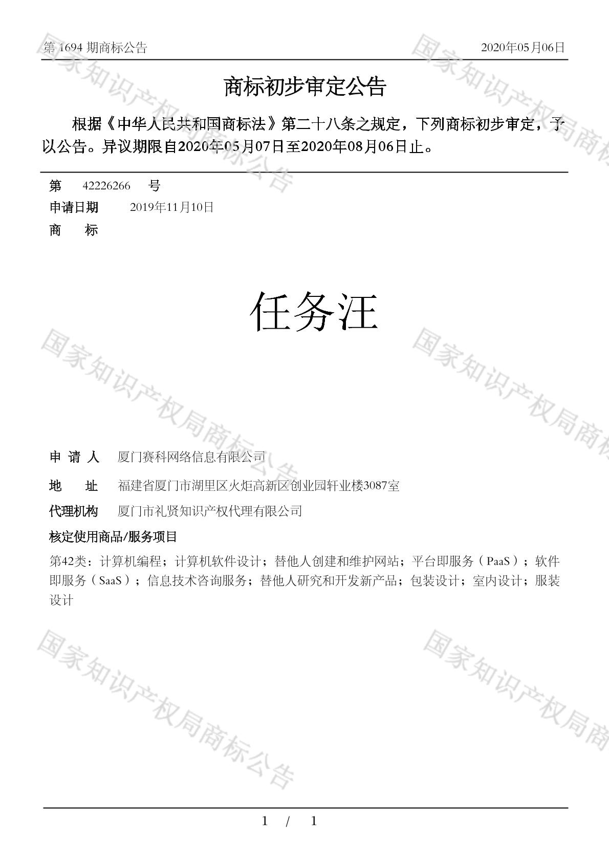 4209-替他人研究和开发新产品;4216-包装设计;4217-室内设计;4218-服装设计;4220-信息技术咨询服务;4220-平台即服务(PaaS);4220-替他人创建和维护网站;4220-计算机编程;4220-计算机软件设计;4220-软件即服务(SaaS) - 1694