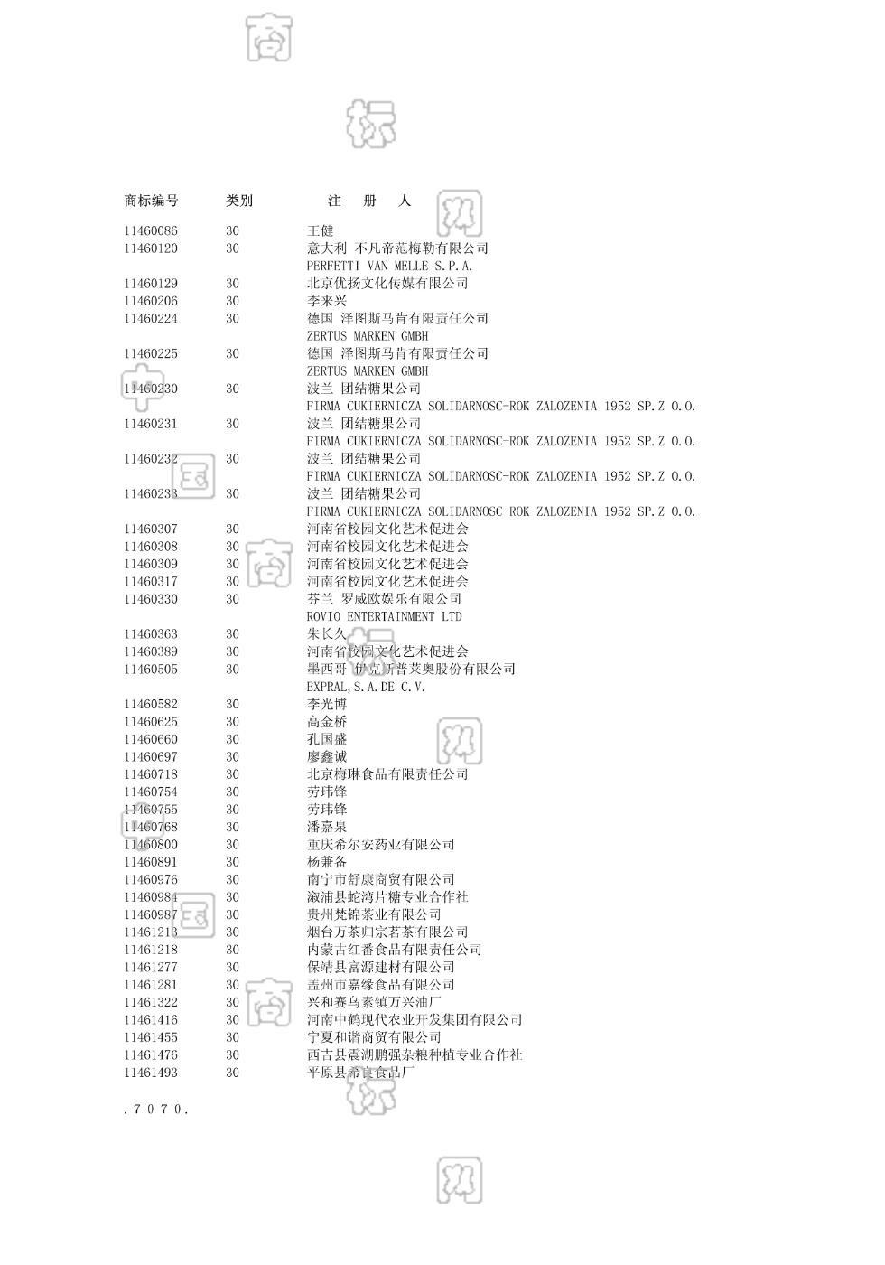 3001 , 3002 , 3003 , 3004 , 3005 , 3006 , 3007 , 3008 , 3009 , 3012 , 3016 , 3018 3001-咖啡饮料,