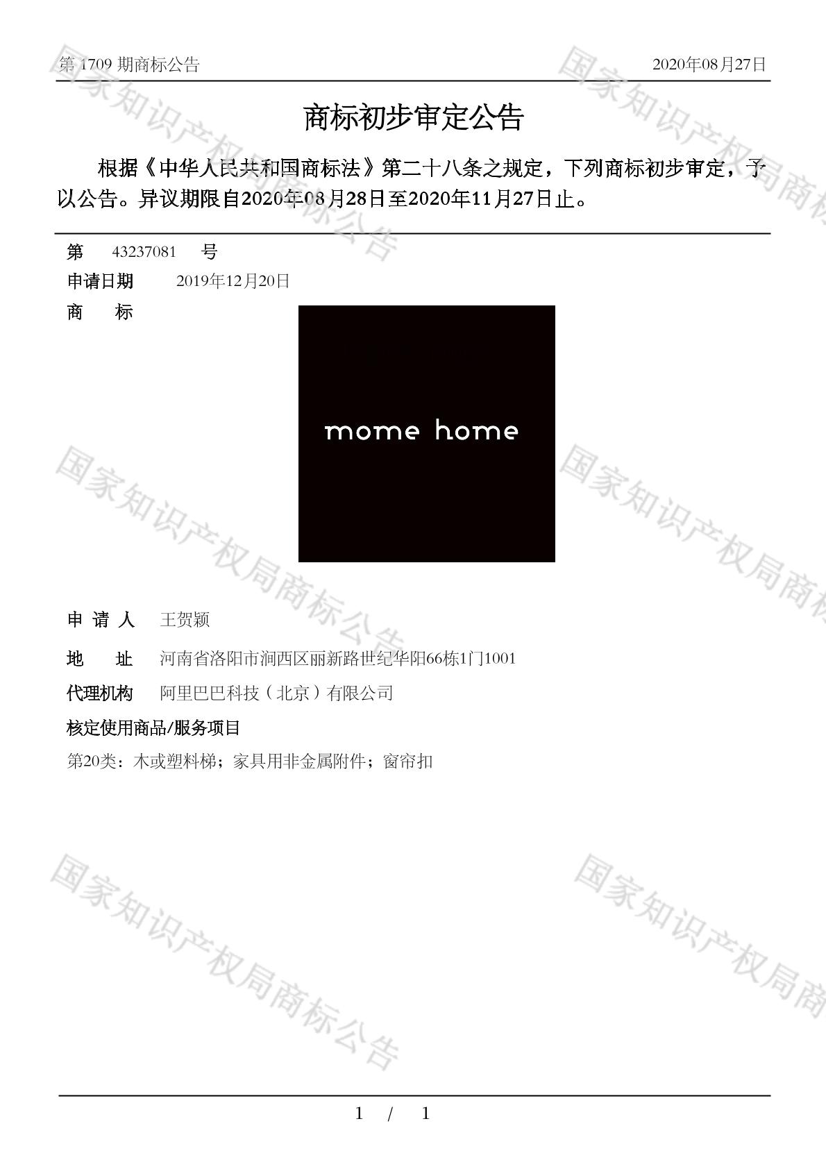2001-家具;2002-玩具箱;2003-木或塑料梯;2004-手持镜子(化妆镜);2005-竹木工艺品;2006-木、蜡、石膏或塑料制艺术品;2008-食品用塑料装饰品;2012-家具用非金属附件;2013-枕头;2014-窗帘扣 - 1709