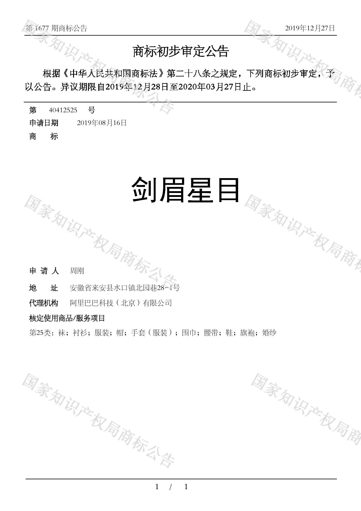 【剑眉星目】商标详情
