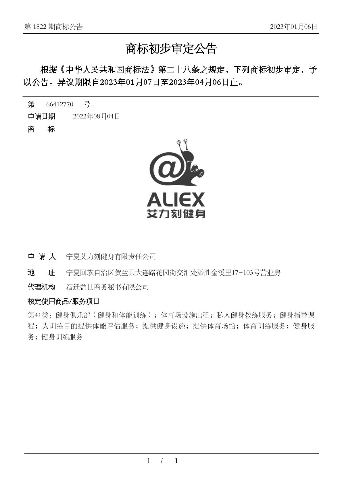 【@ ALIEX 艾力刻健身】商标详情