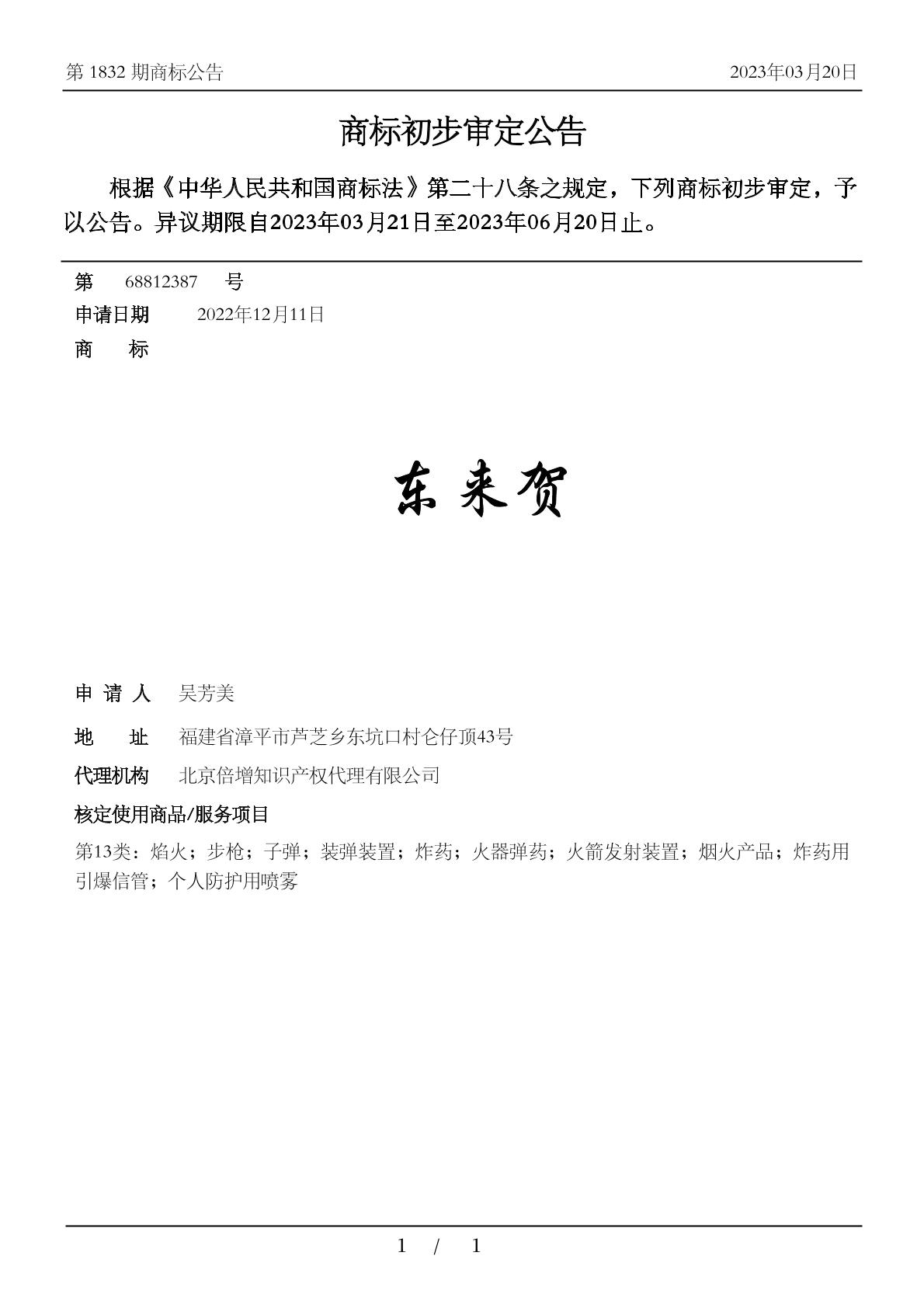 1301-子弹;1301-步枪;1301-火器弹药;1301-火箭发射装置;1301-装弹装置;1302-炸药;1302-炸药用引爆信管;1303-烟火产品;1303-焰火;1304-个人防护用喷雾 - 1832