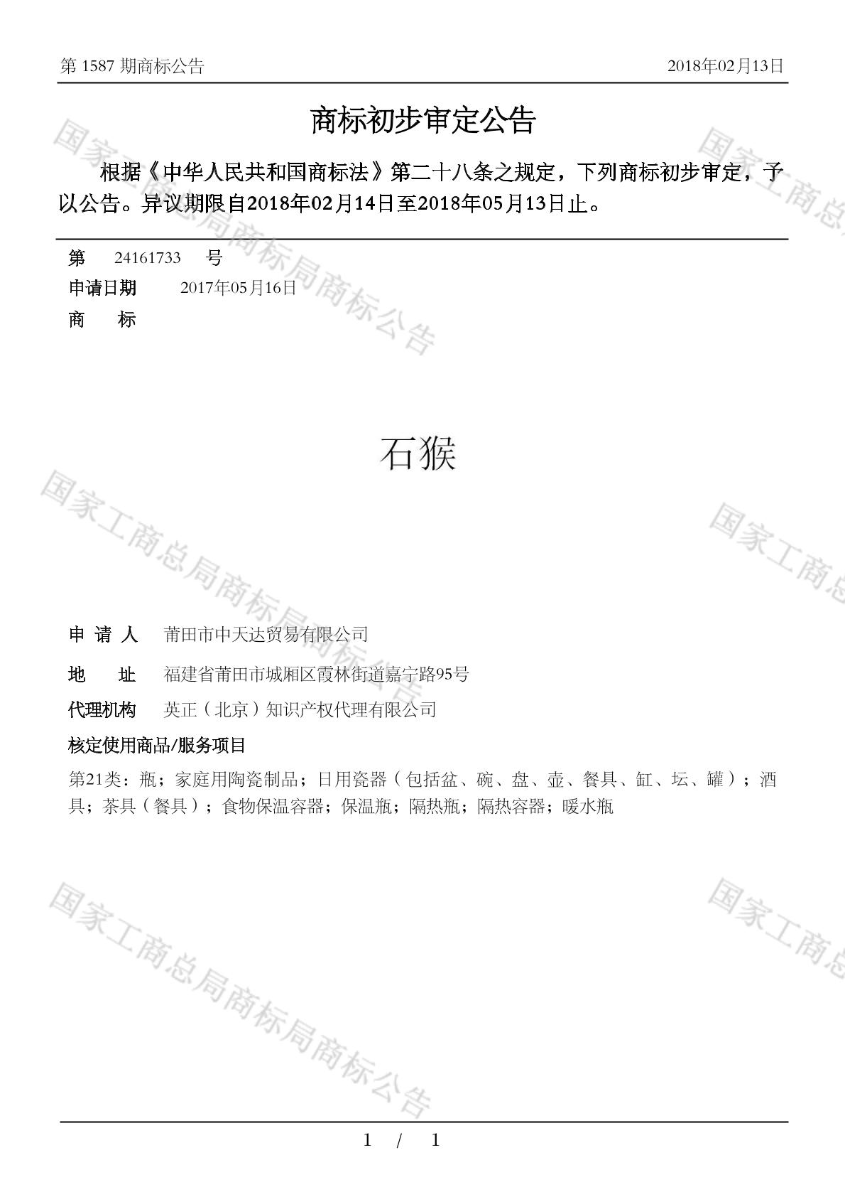 【石猴】商标详情