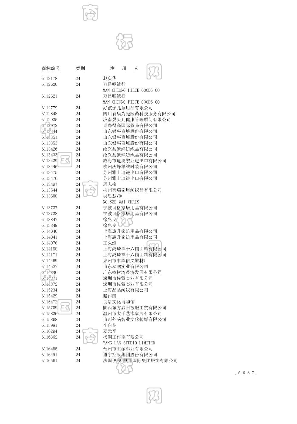 2406-床上用亚麻制品;2406-床单(纺织品);2406-床垫遮盖物;2406-床罩;2406-绣花枕套;2406-被子;2406-被絮;2406-被罩;2406-被面;2406-褥子 - 1197