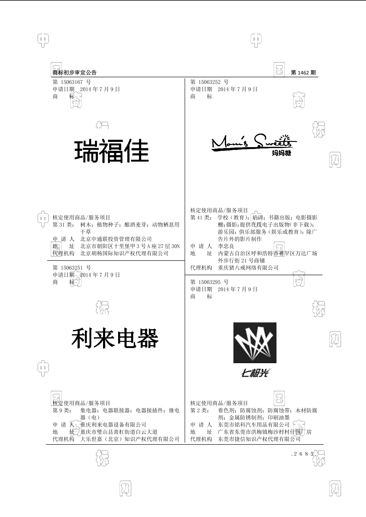 2014-10-25 商标注册申请 | 等待受理通知书发文