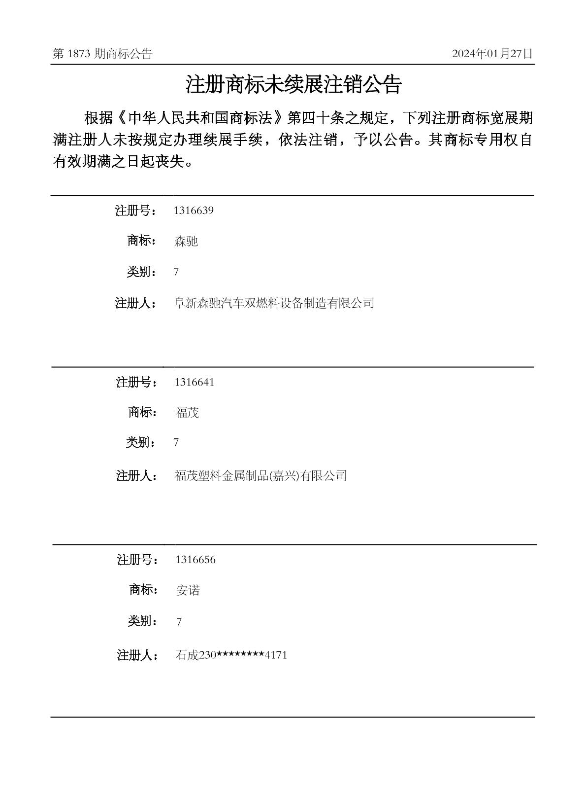 2024-01-29 期满未续展注销商标 | 排版未续展注销公告